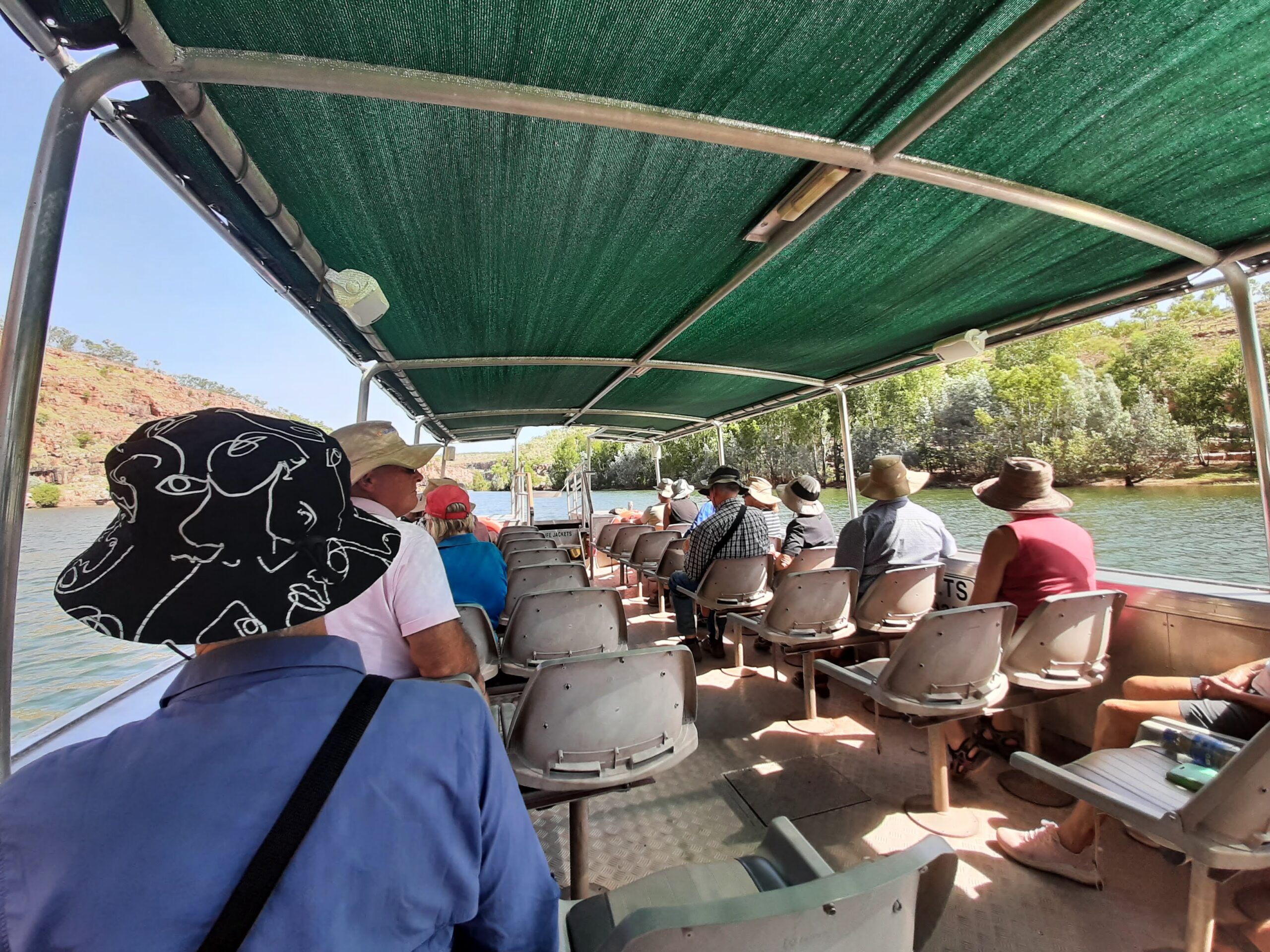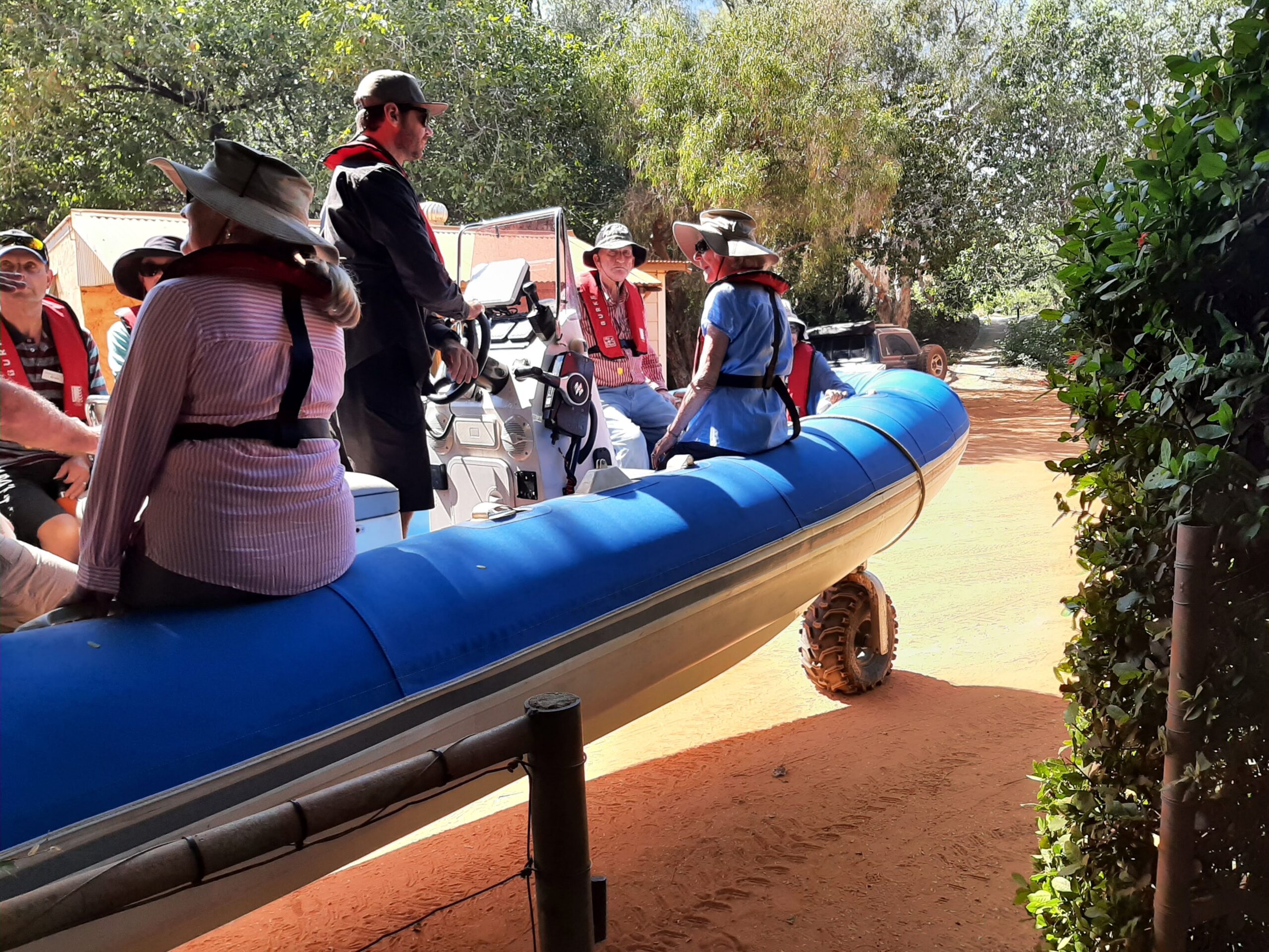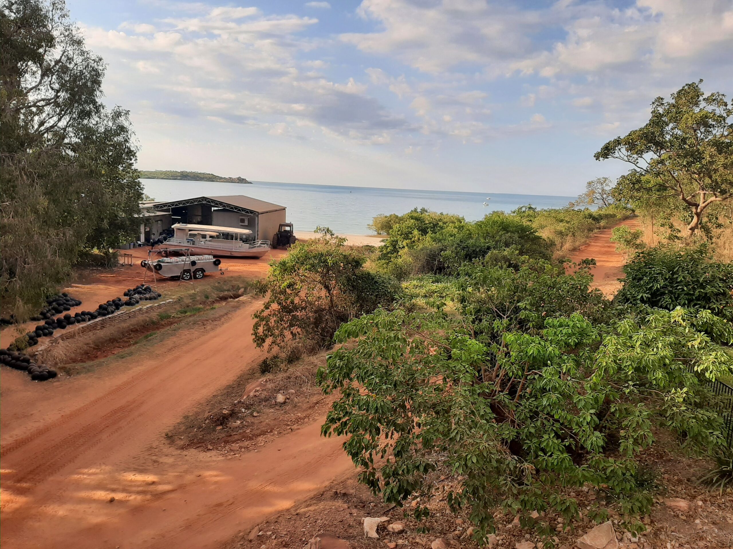 First day is a drive to Cygnet Bay Pearl Farm on the Cape Leveque peninsula. After a morning tea stop at the Djarindjin Roadhouse, we arrived at 10.30 am. First thing we were on a boat ride around the Buccaneer Archipelago with over a 1000 islands and a huge tide movement. today was a 5 metre movement, some days it can be as high as 12 metres. We were going out on a low incoming tide.