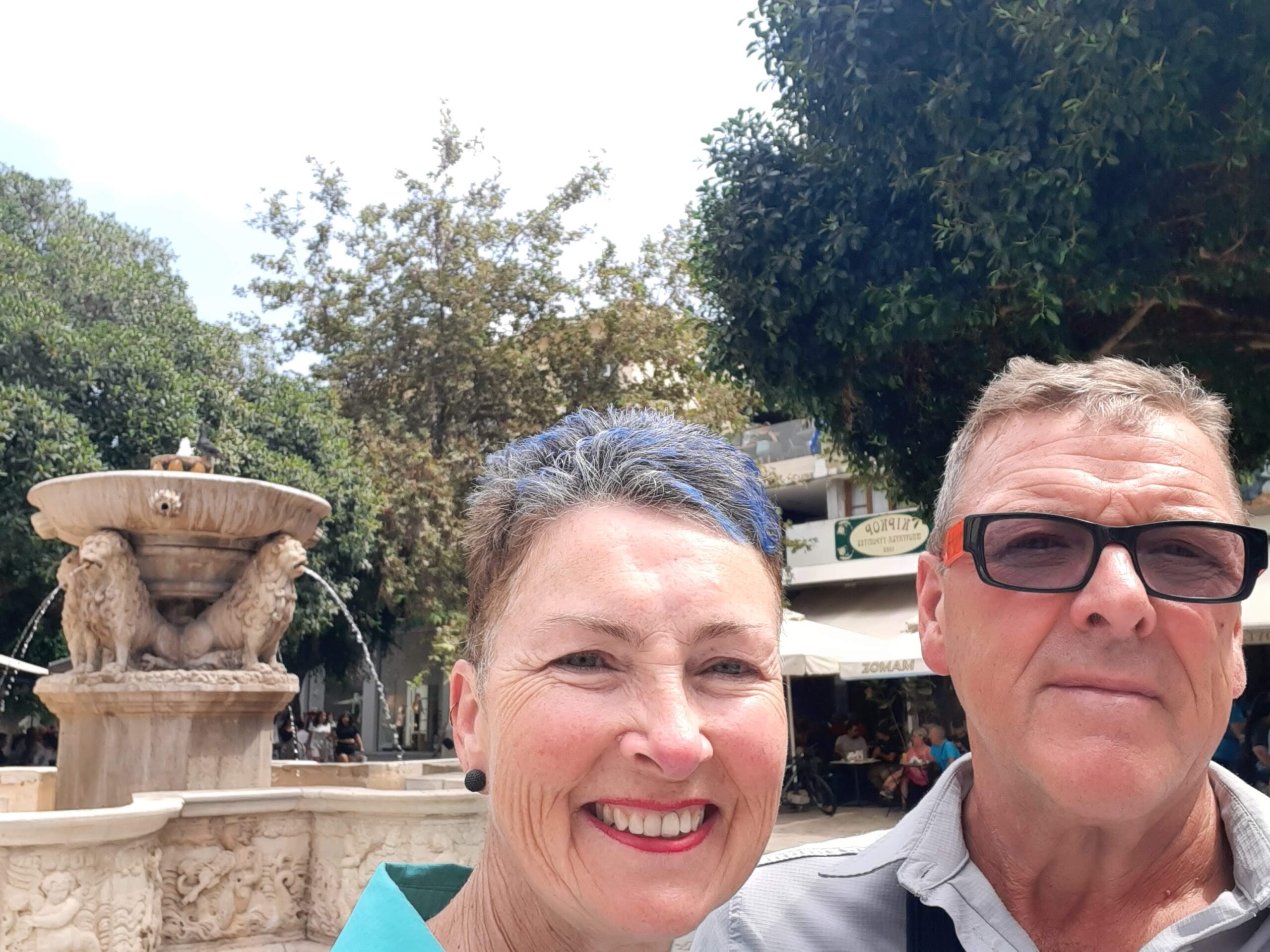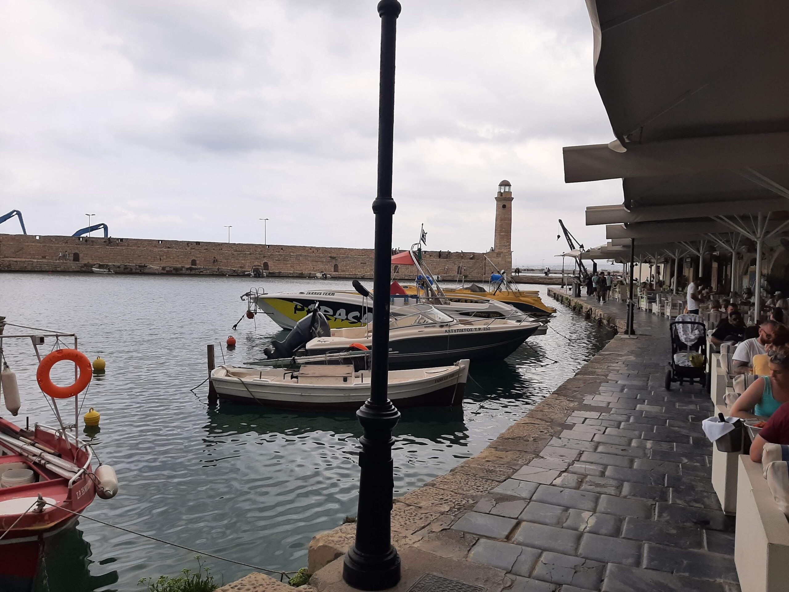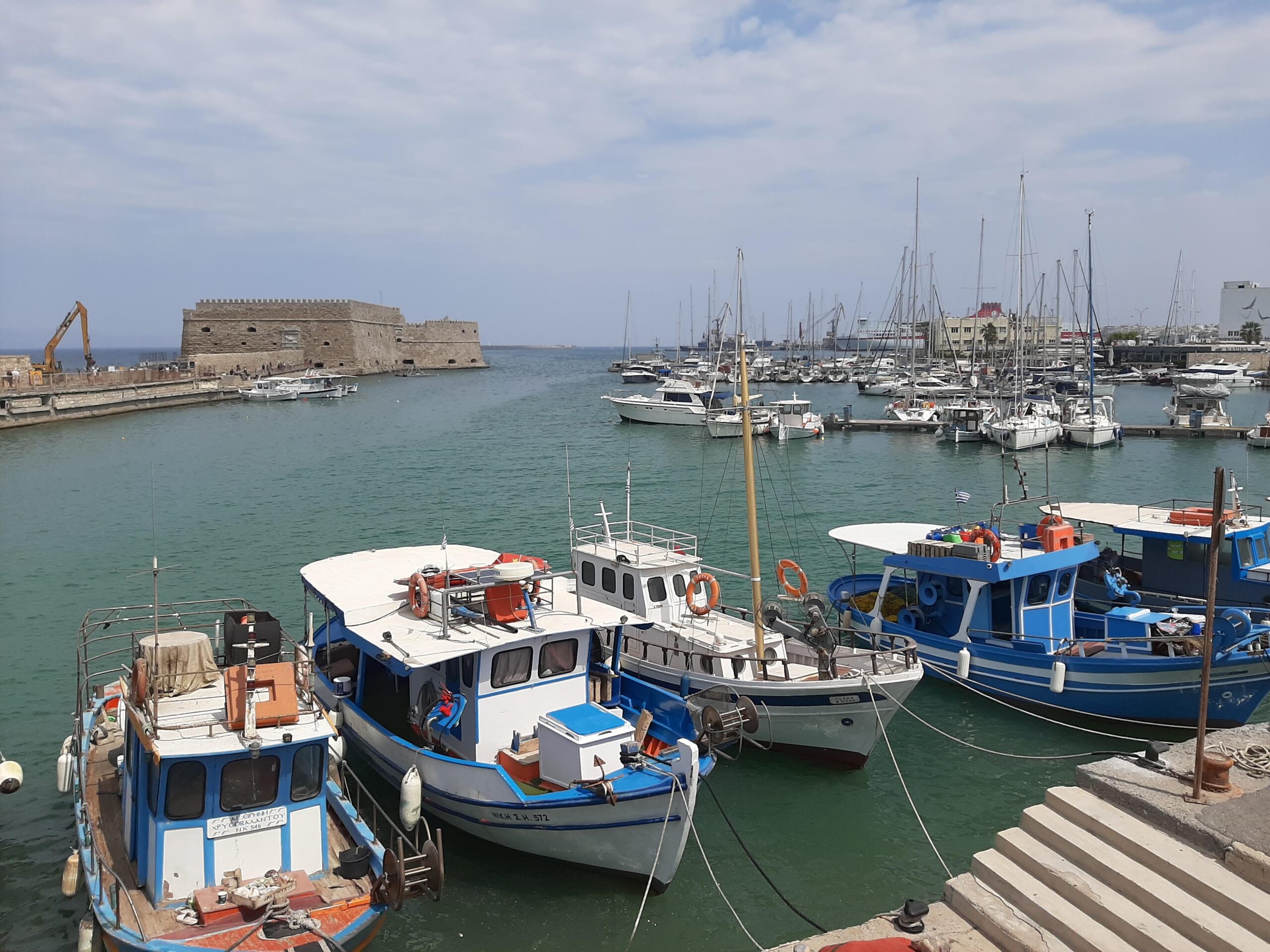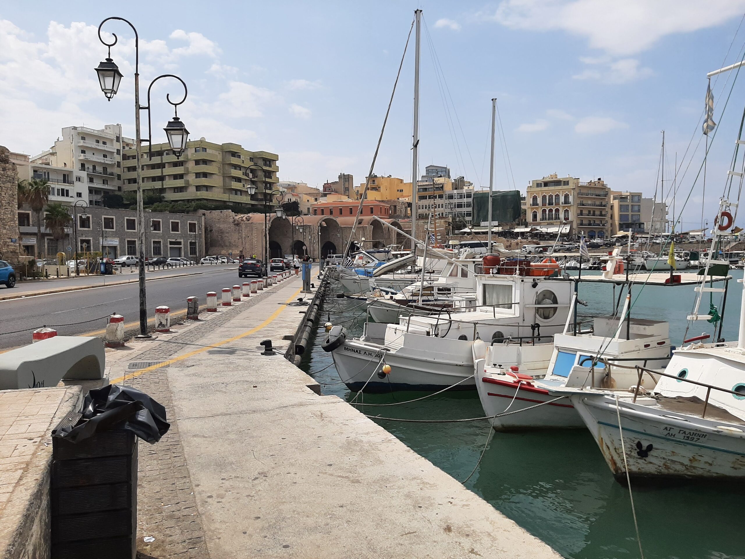 We caught the public bus back into the centre of Heraklion, the capital of Crete, and walked the periimeter of the Venetian Walls surrounding the city. This took us around the foreshore, including the old Venetian Port. It was warm and we were ready for a coffee and something to eat !
