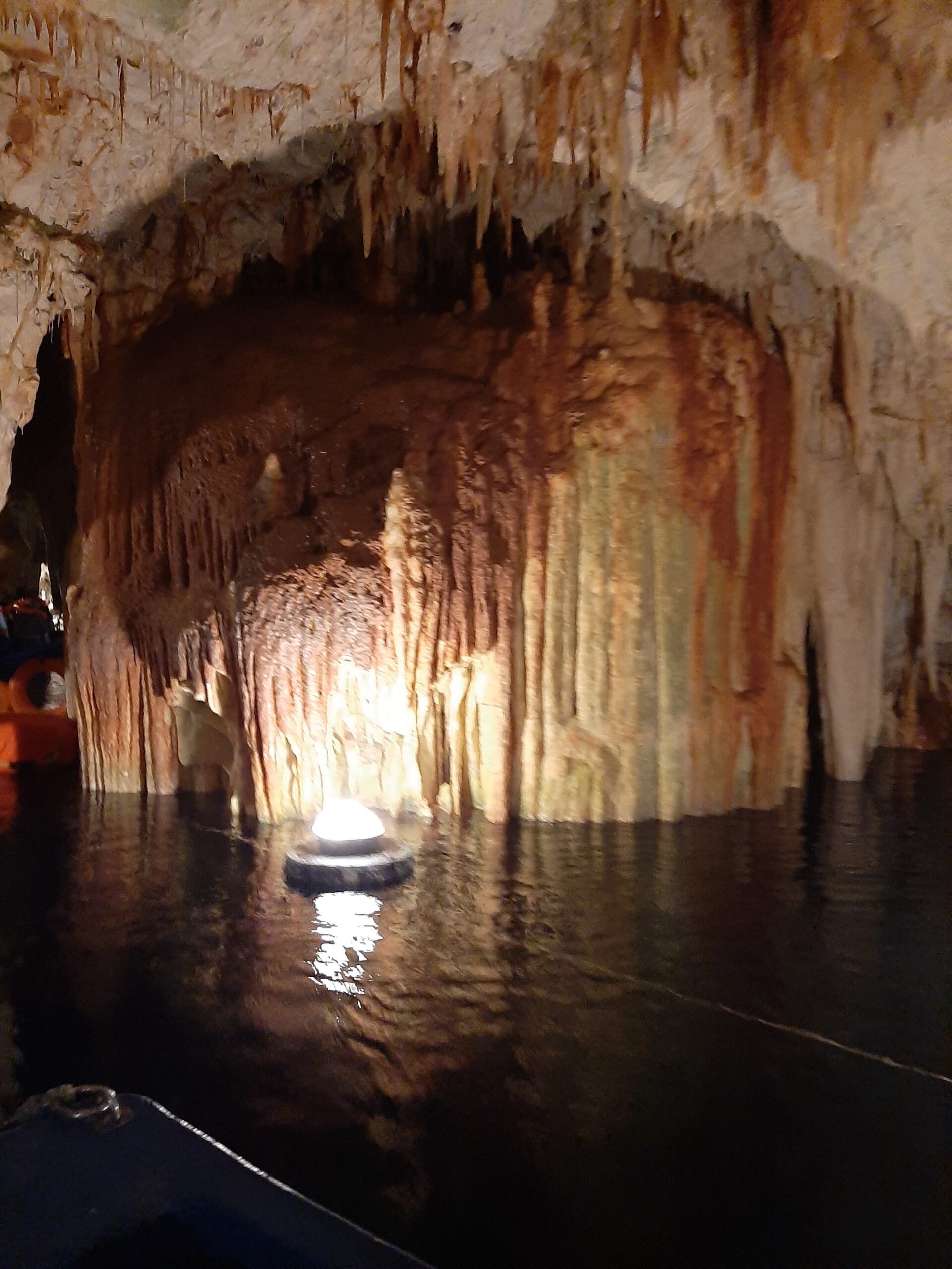 The first part of the tour is on a boat, with 6 persons plus the guide on each vessel. We spent about 25 mins on the water working our way through a maze of tunnels, ducking and weaving the overhanging stalactites and sheet limestone formations. The cave we entered was called VLYCHADA, and was discovered by locals around 1900. By 1960, 1,600 metres of the cave had been mapped, to date 14,700 metres has been mapped. The largest part of the cave is below water level, maximum depth is 80 metres. It is ranked as being the 3rd most beautiful cave in the world. After personally visiting lots of caves in many countries over the years, we personally think this is too big a statement.