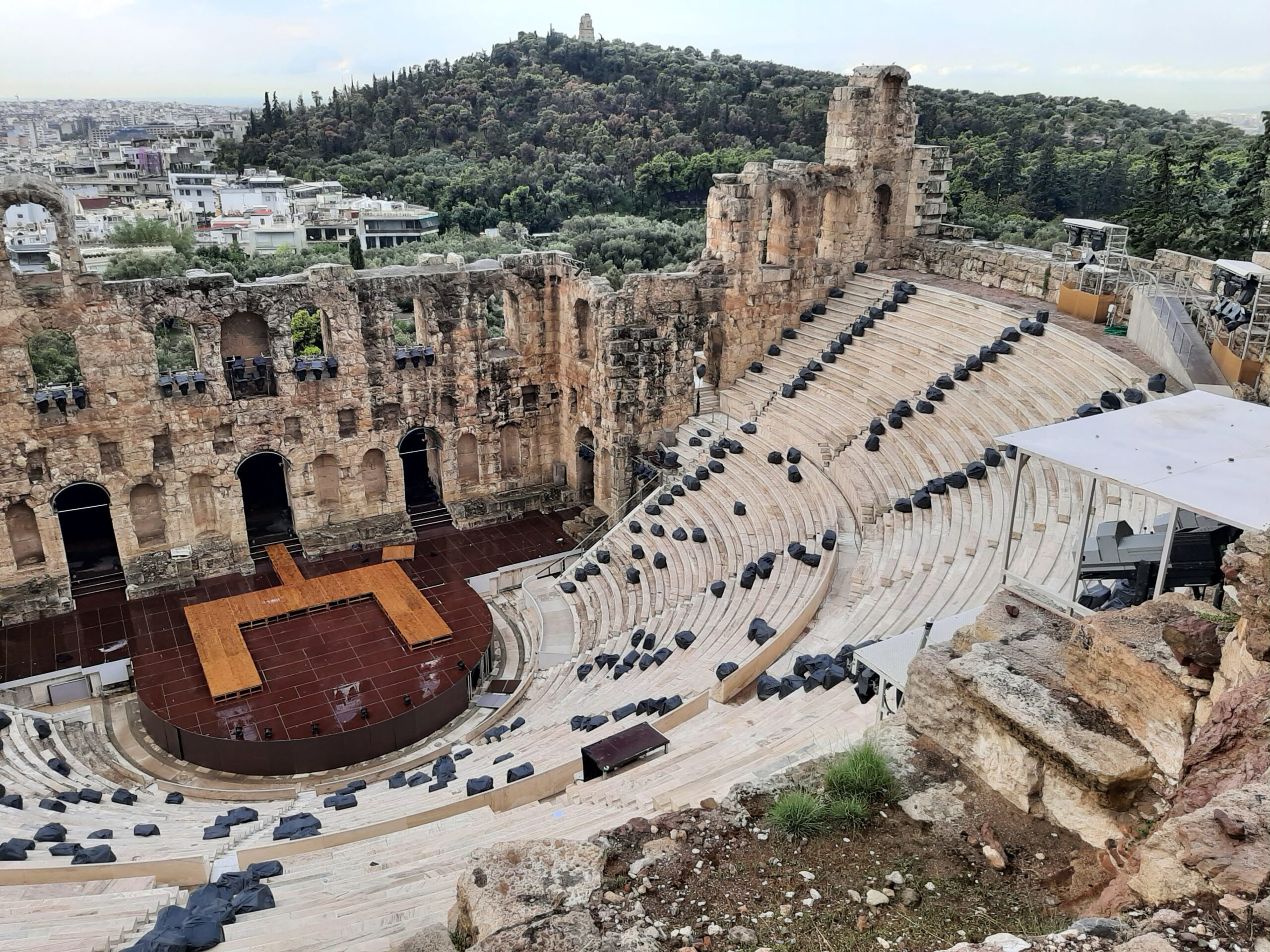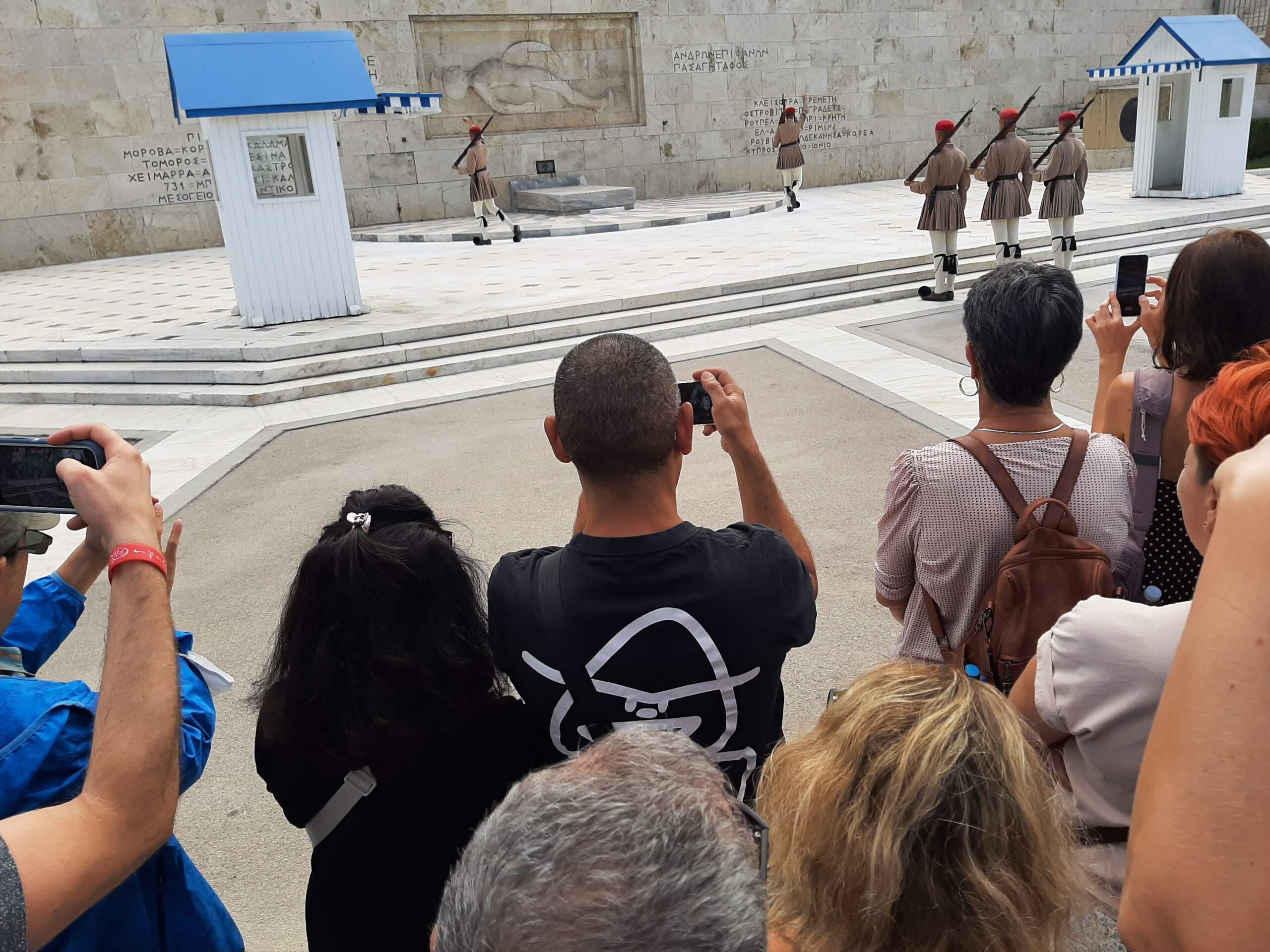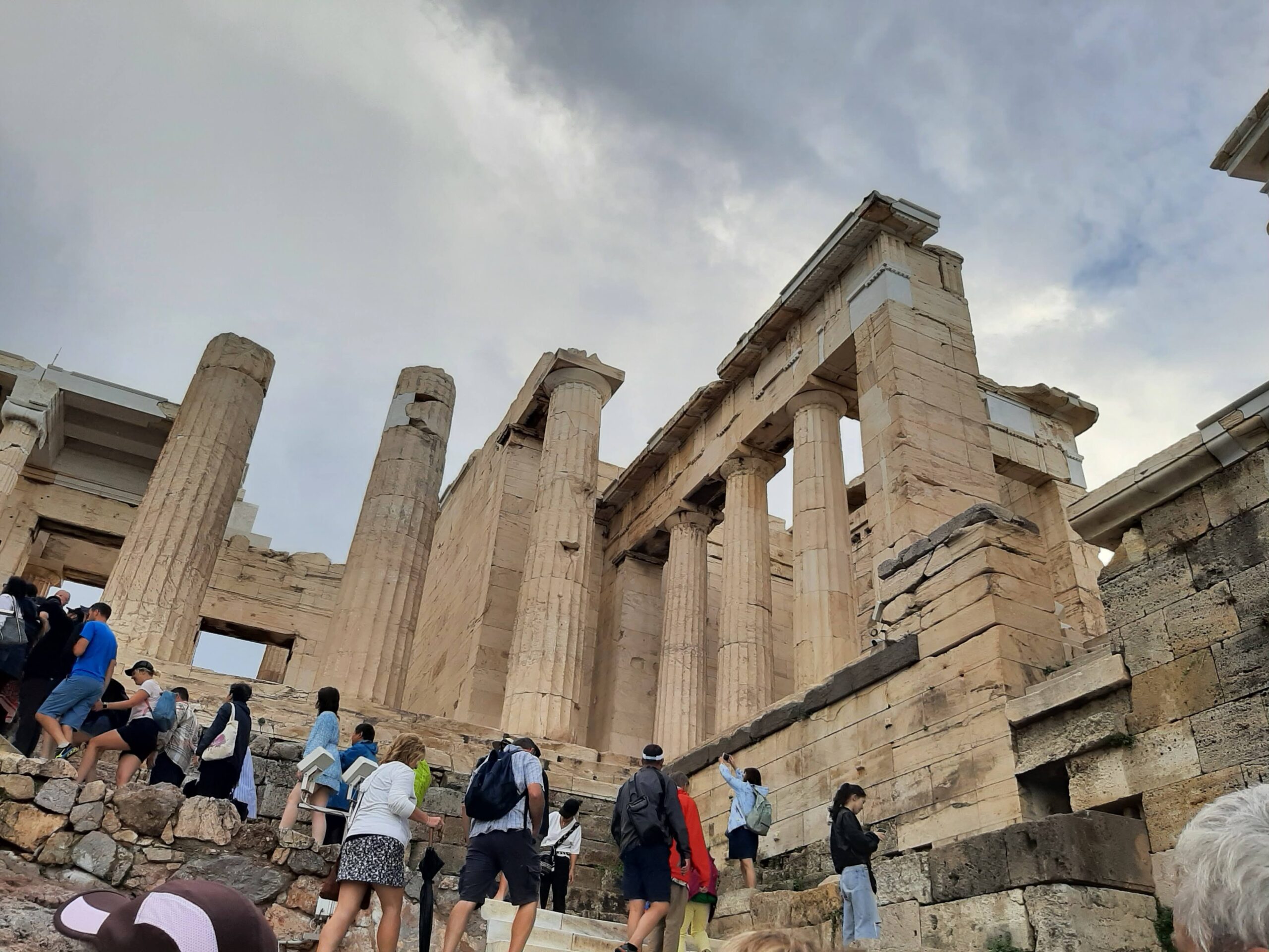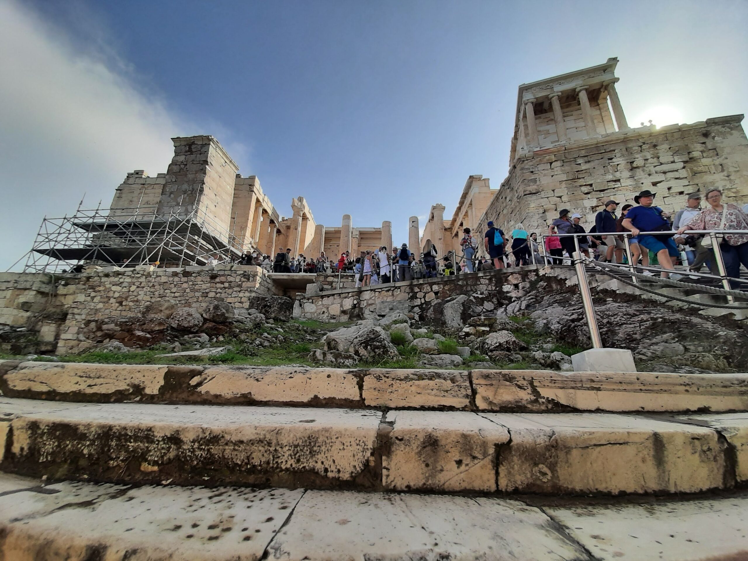 The Acropolis is the hilltop, the Parthenon is the Temple of Athena which still sits atop the Acropolis, along with other temples, theatres, stoas etc. The view over Athens is amazing ! As we made our way up the hill, the weather cleared and blue skies appeared - the Gods must have known we were visiting ! Earlier crowd numbers were down but soon increased as the weather improved. Artemis was a great guide and we learnt a lot about the history and structures on the Acropolis.