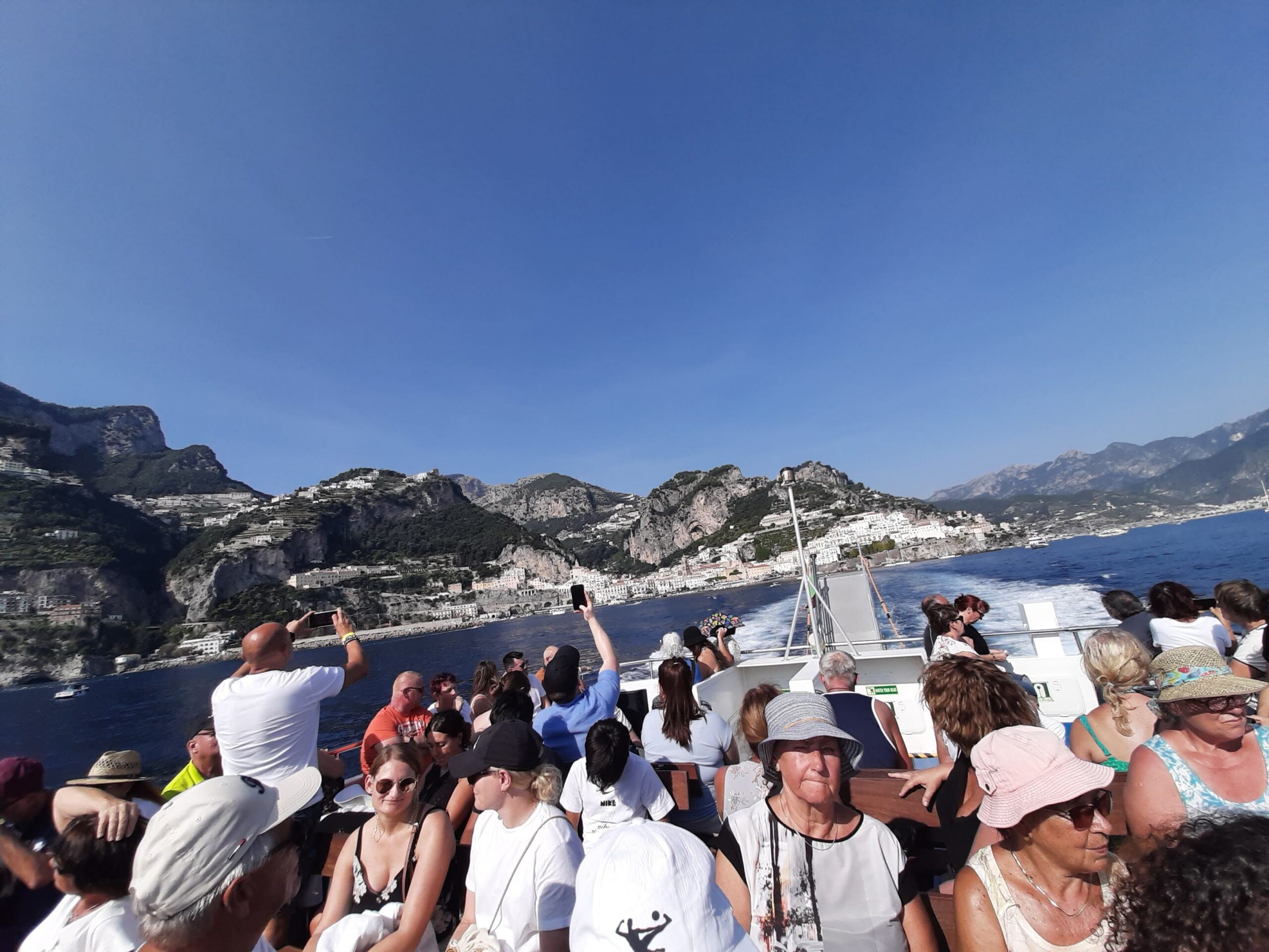 When we booked the tour at a ticket counter in the Naples Central train station, we were told the tour would spend some time in the bay of Sorento (not docking), 1 hour spent in Amalfi, and 1 hour spent in Positano, returning to Naples by 17:30. In addition there would also be guided tours at each place and commentary on the boat.