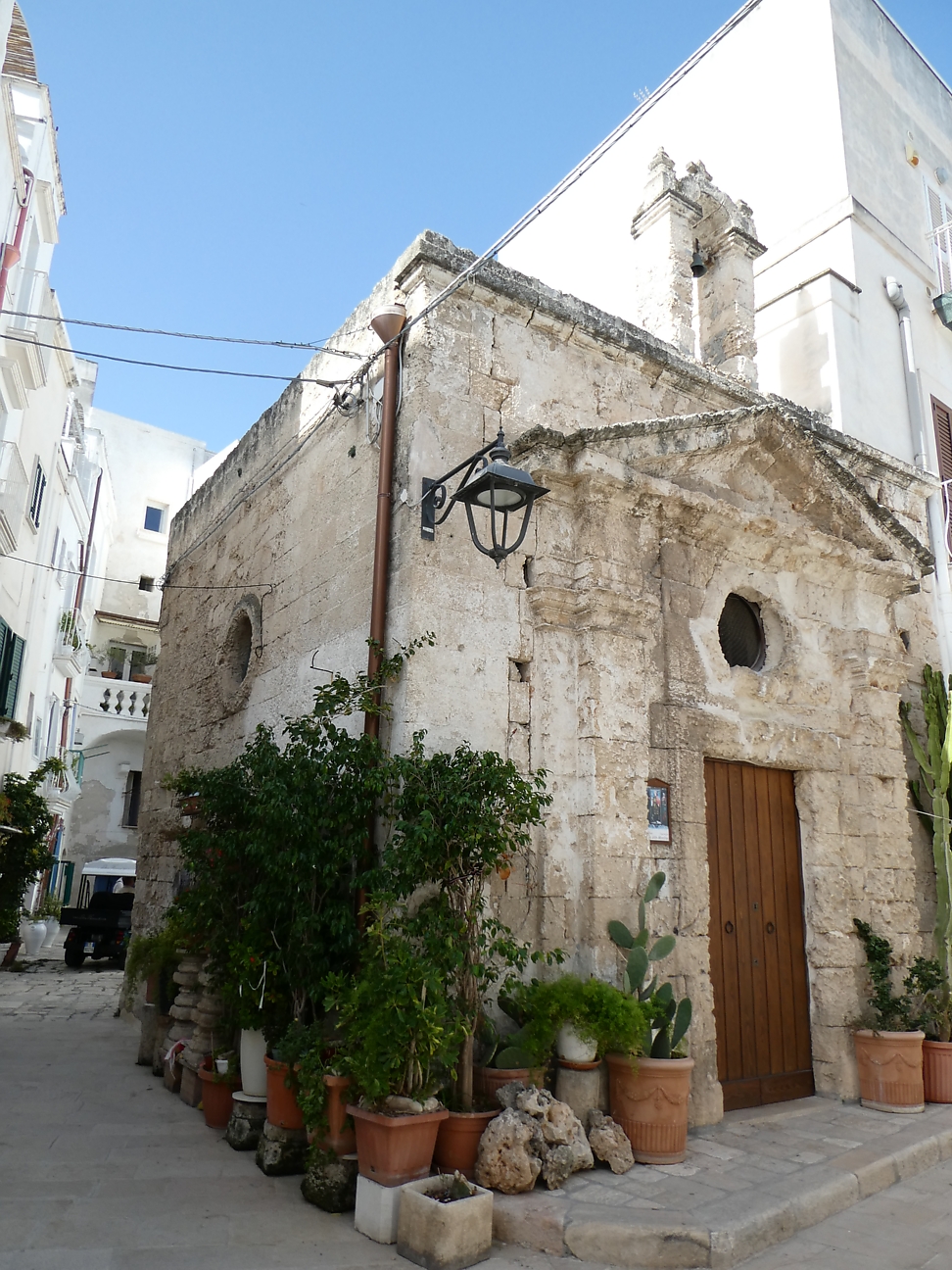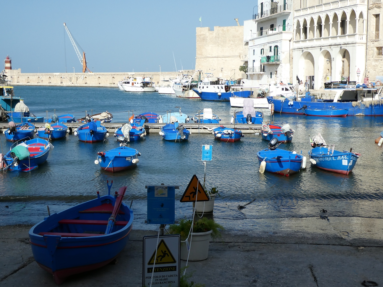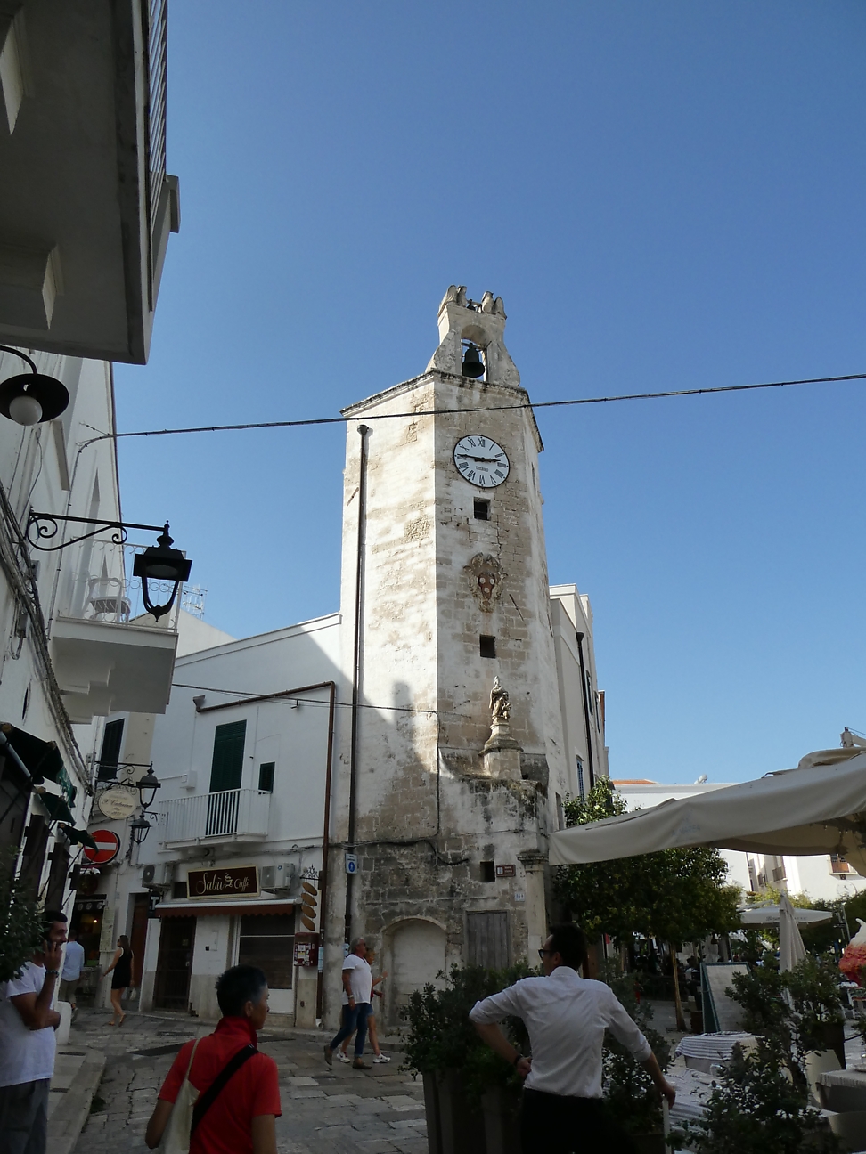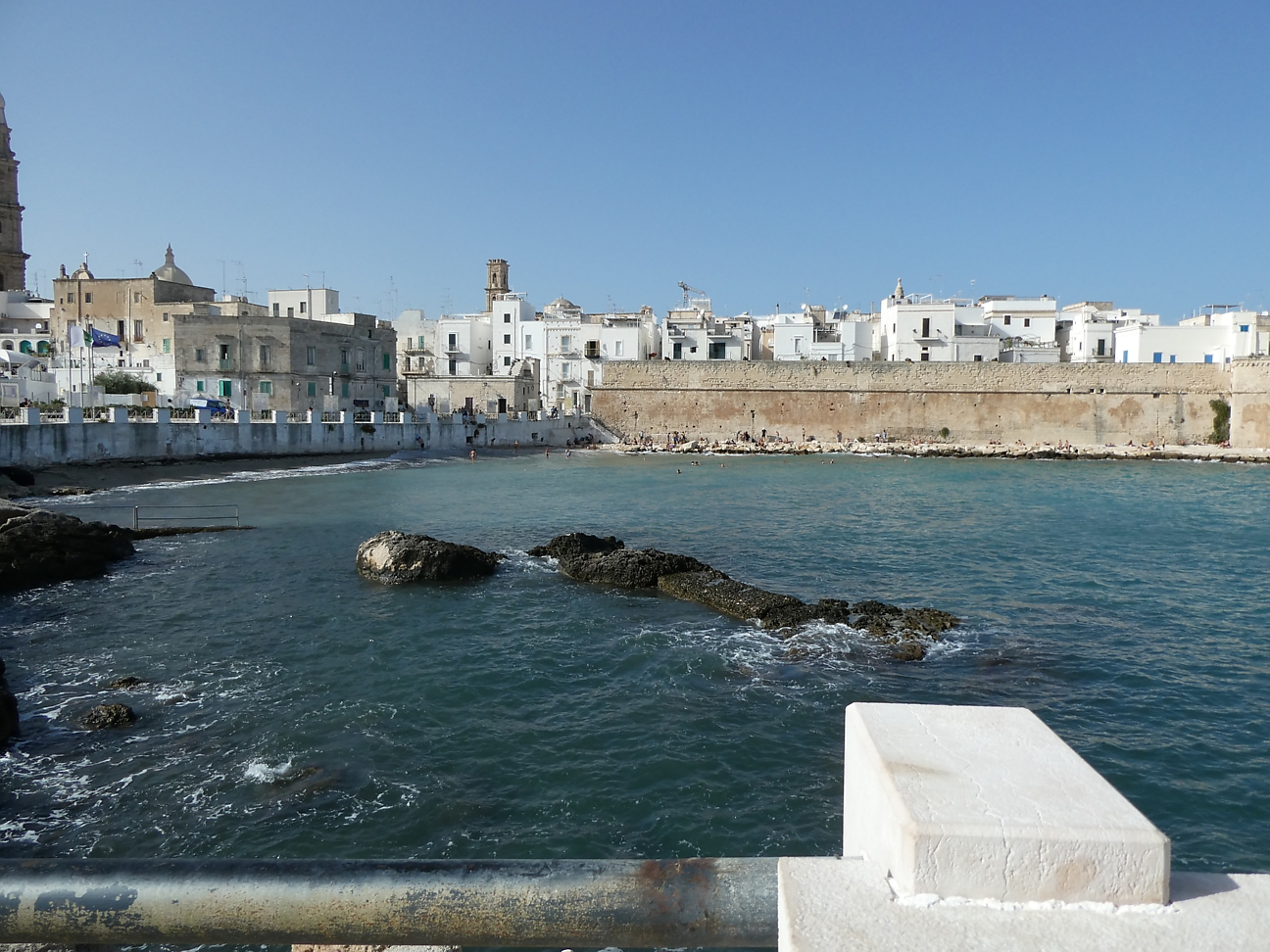 Arrived at 13:00, parked our car outside our booked apartment, but it was not ready to book in yet, so we walked into Centro Storico of Monopoli which sits on the coastline. We walked around th maze of narrow streets some lined with cafes, restaurants, shops and clotheslines attached to the balconies full of washing. There is a small rocky beach and protected harbour. Nothing to rave about, but pleasant enough.