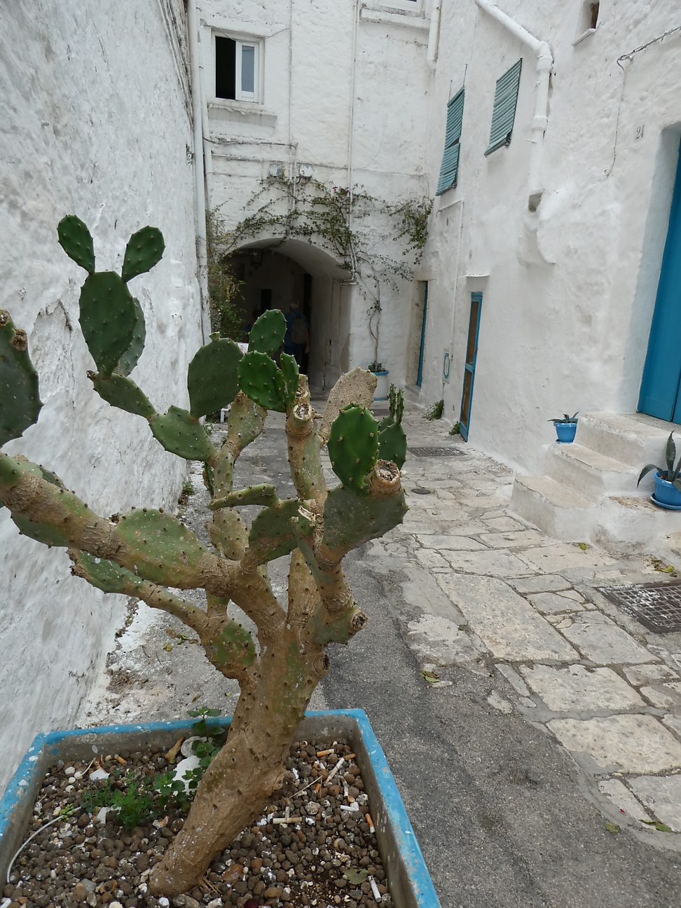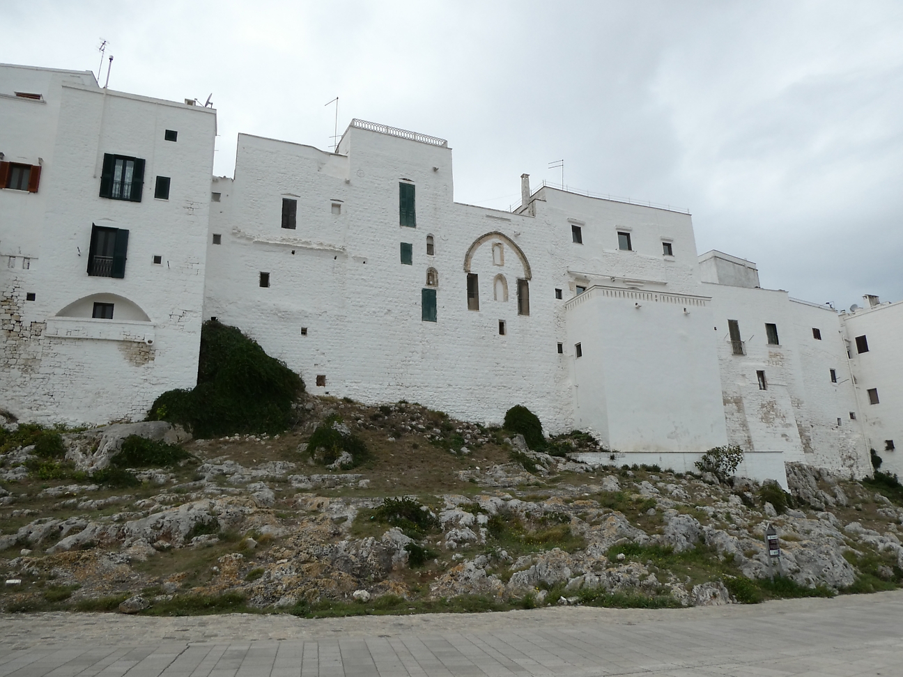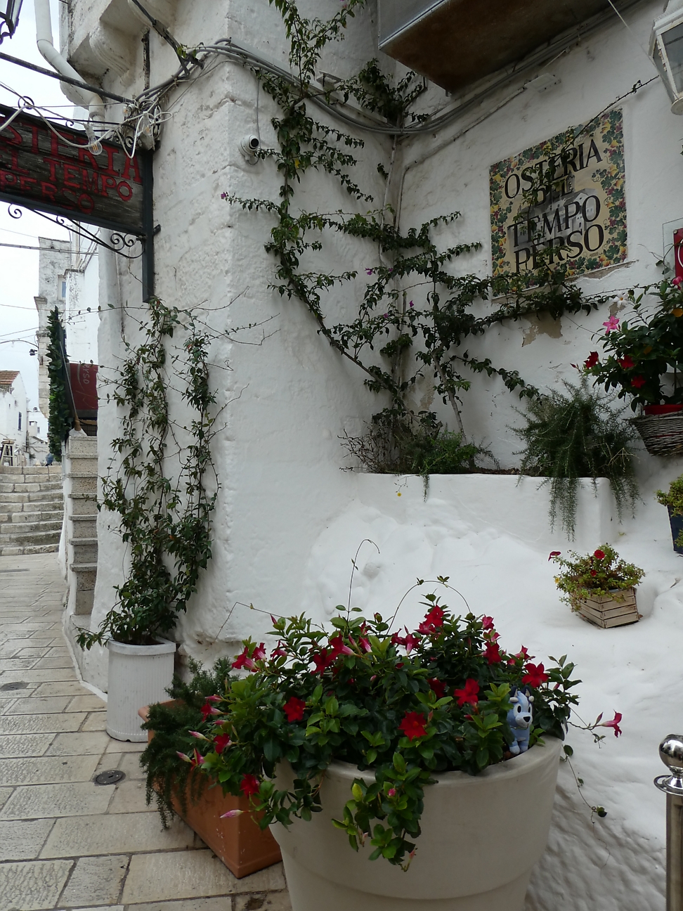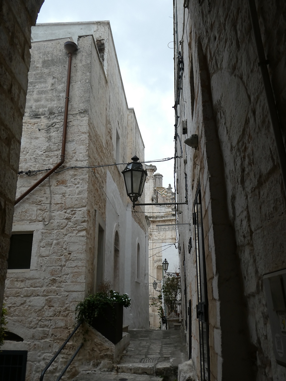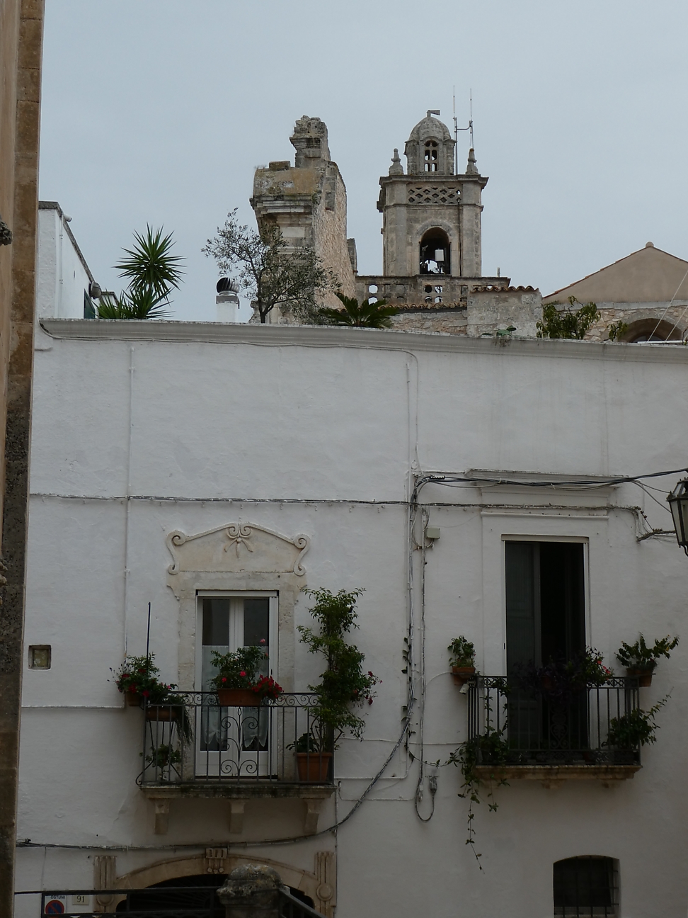 We then headed for the Centro Storico of Ostuni, famous for its white washed old town and known as the "White City" standing on a hill a few kilometres from the sea. The houses are supposedly painted white each year which helps keep the rooms cool during summer. As we walked through the old town, we did notice quite a few that hadn't been painted for a while ! The white town sitting on the hill creates quite a spectacular scene as you drive toward it from the coast - except for today !!