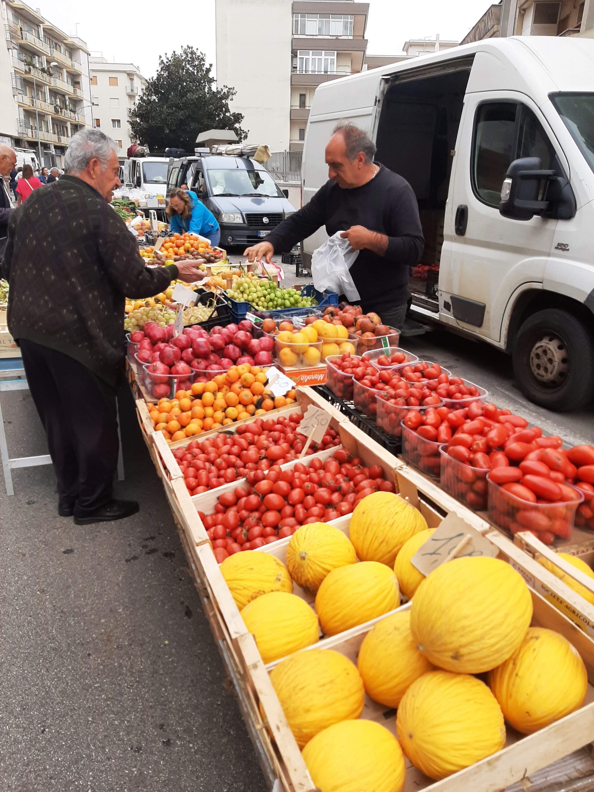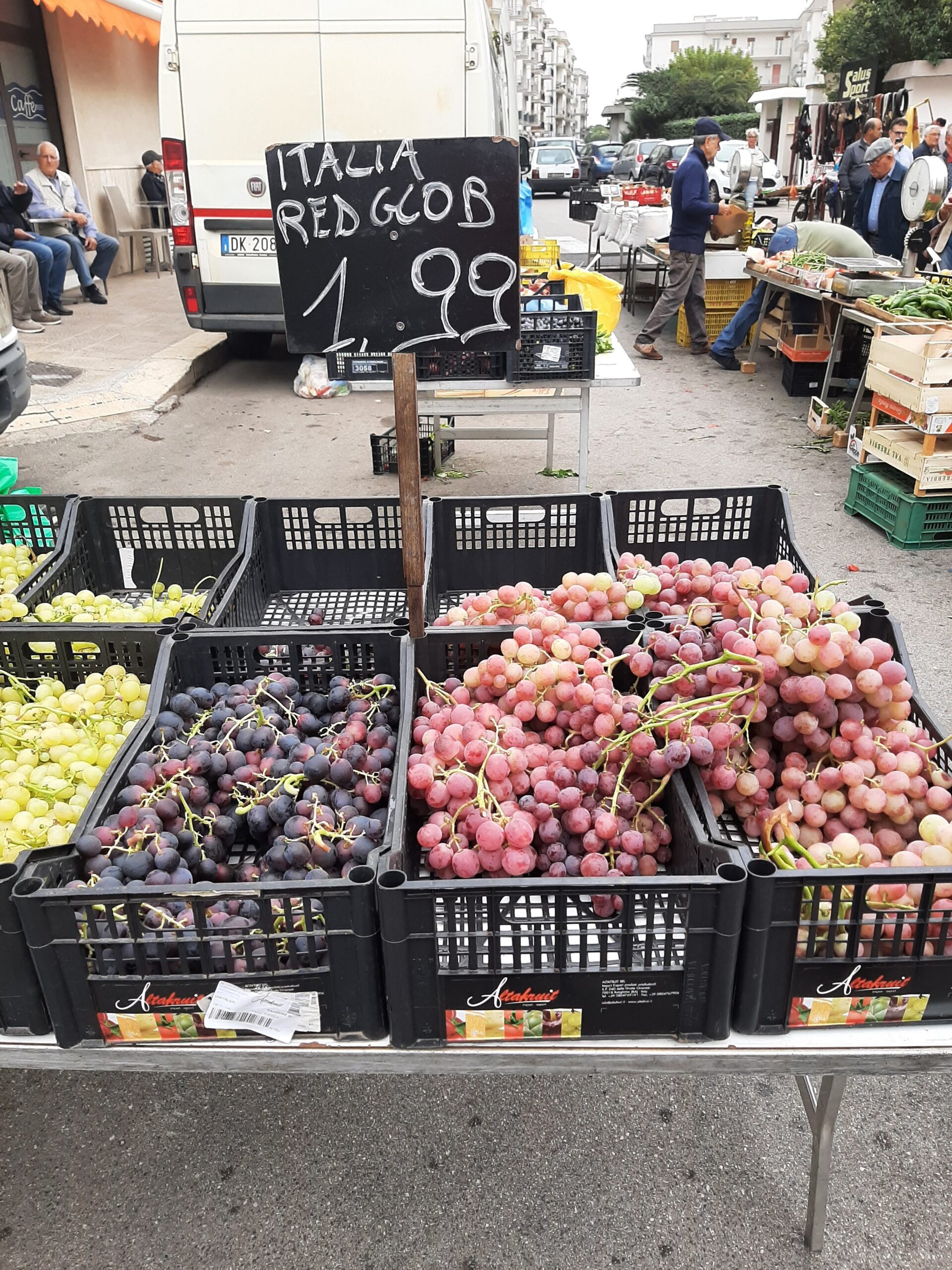 A 35 minute drive and we arrived at Ostuni at 9:20, found a park and set the GPS to guide us to the markets. It was a huge area being utilised, but hardly busting, we think the weather, particularly the wind, has kept shoppers and even traders away. Regardless, there was still an extensive array of fresh fruit and veg, clothing, shoes, bags, haberdashery, hardware, kitchen ware, etc etc. We purchased some bananas and apples - for the first time we were not allowed to select (pick up) our apples, the lady was to do it for us. We smiled at her and she gave us an extra one !! 🙂 (side note: we started making bircher for breakfast, so we also bought a grater)