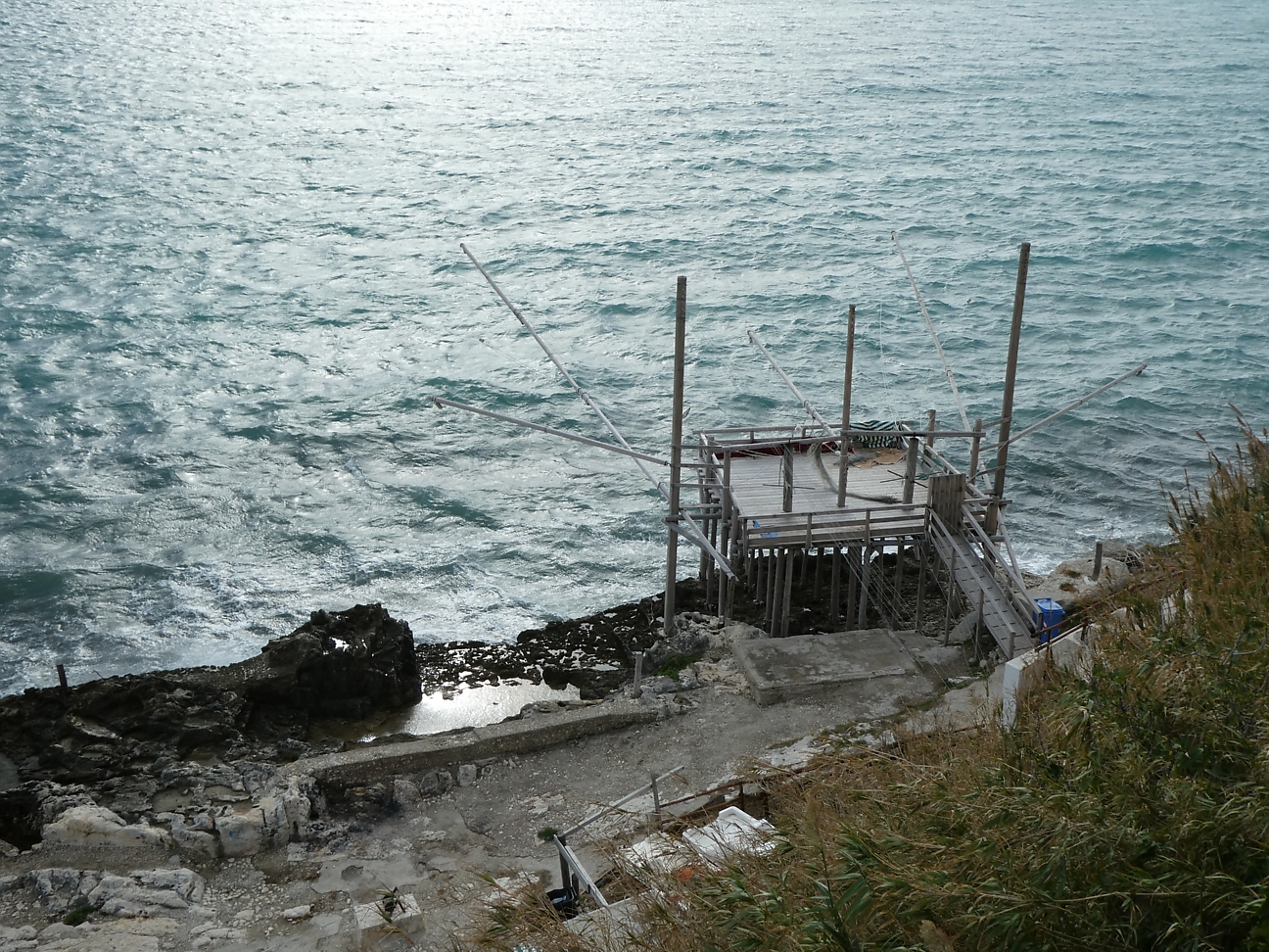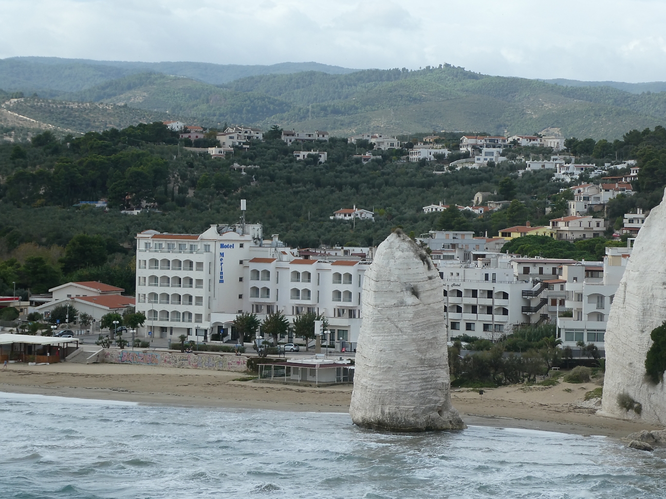 Spent just under an hour there and then back on the road, the isthmus of land contained, but the salt flats turned into fertile wetlands, and a number of vegetable patches under cultivation. As we got closer to the Gargano Peninsula, we started to climb hills, which turned into mountains and more tunnels ! This part of the drive became very scenic, although slow due to the winding roads. National Park, forests and steep drops down to beaches every now and then.