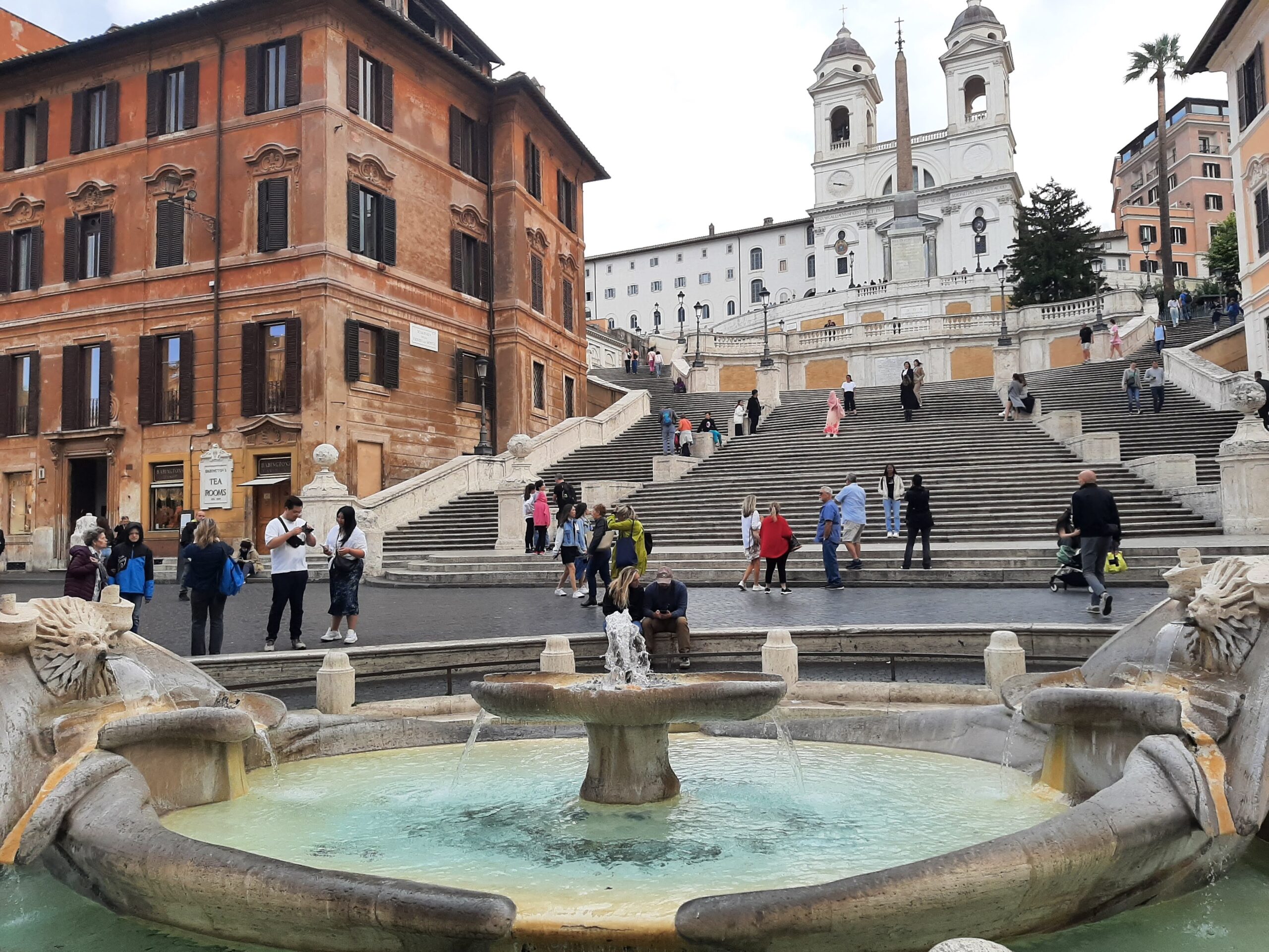 Met our free walking tour guide, Fabio at 10:00 and started the tour with a description of the Spanish Steps and the Barcaccia Fountain (broken ships), a Bernini sculpture, inspired by the flooding of the Tiber at this very point and maybe damaged ships being washed up on this very spot in ancient times.