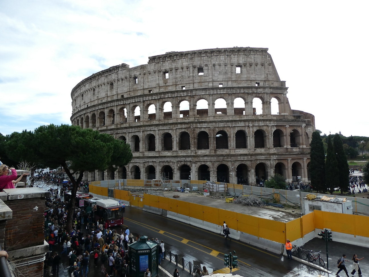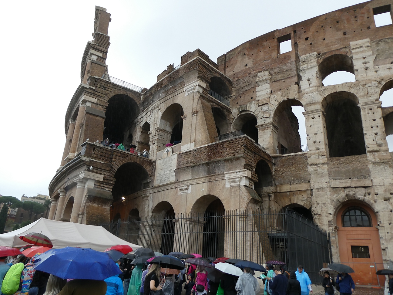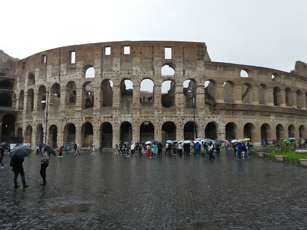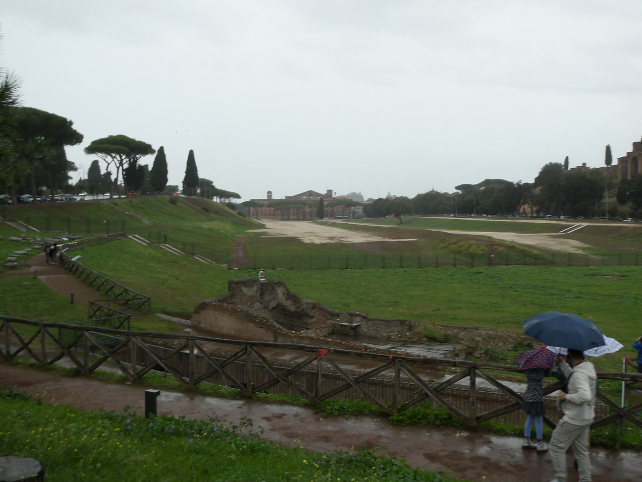 After lunch it was starting to rain, so out with the umbrellas and jackets. We walked back via Avertine Hill, which presented a fabulous view back over the city rooftops, then past Circus Maximus and eventually to the Colosseum for our first up close experience, the size of it is quite overwhelming ! We could have caught the underground metro or a bus but the decision was to walk back 4 Km in the rain.