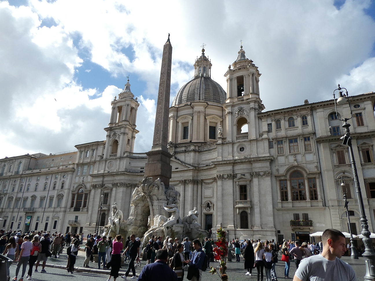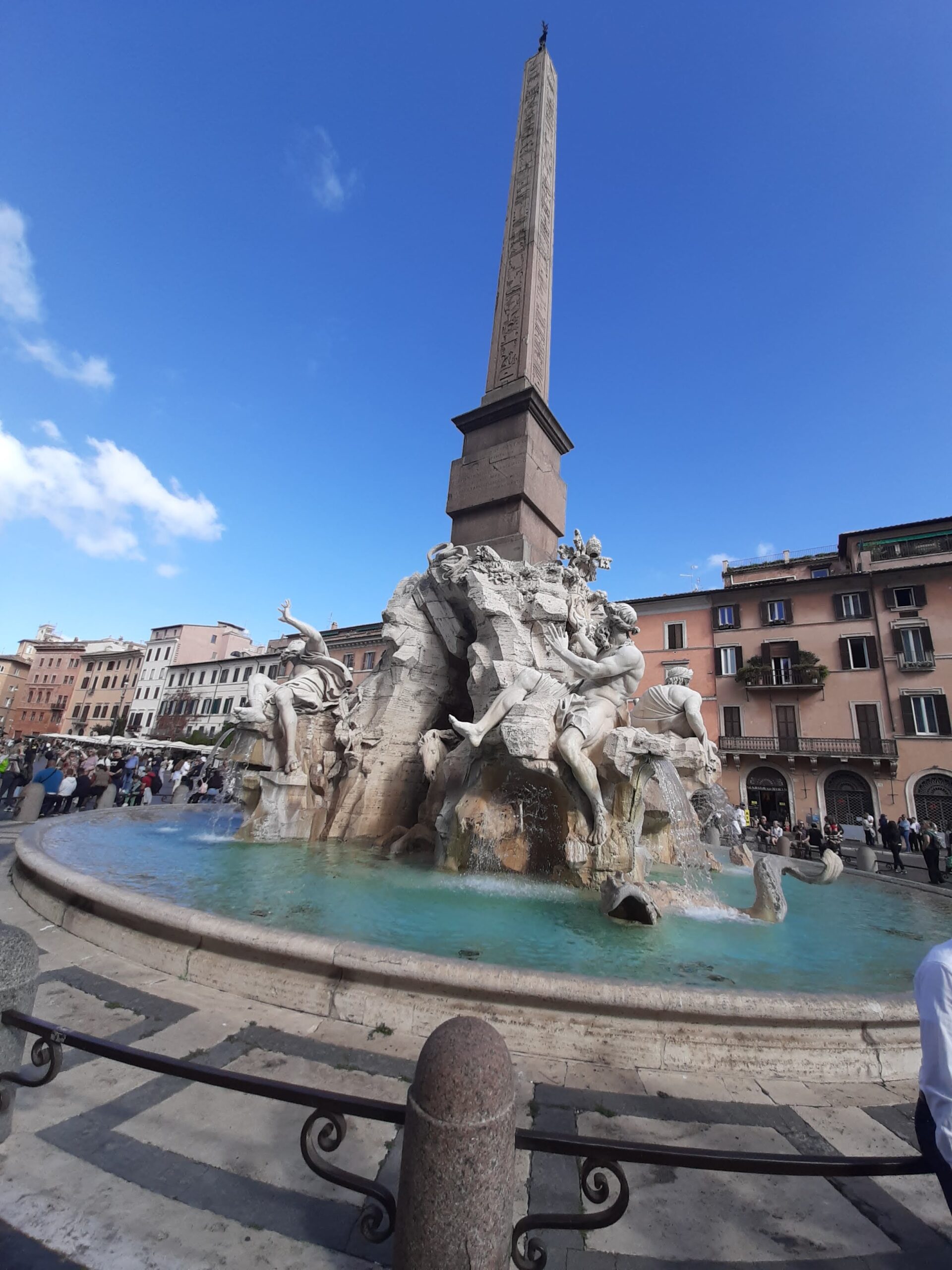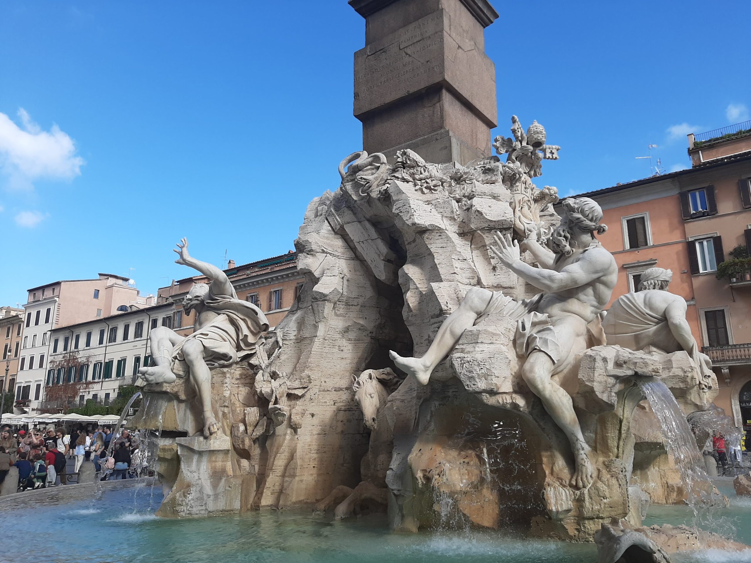 Next stop was Piazza Navona with 3 fountains, and a church. The central spectacular fountain, the Bernini four rivers fountain - spectacular ! Piazza Navona was in fact an original Roman stadium where Olympic Games were held.
