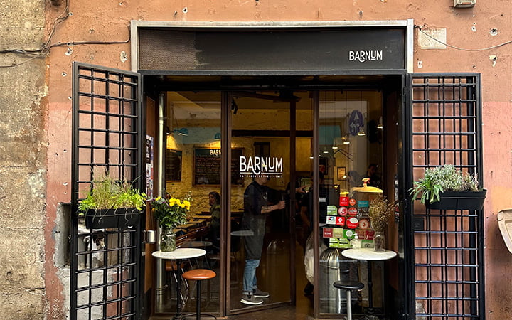 The next two spots were most important, first to Antico Forno Rocioli for reportedly the best pizza in Rome. We shared 3 slices of different varieties, not bad, but while there we chatted to a local who informed us of another pizza bar he believes has even better pizza ! Next stop Barnum Roma for reportedly the best coffee in Rome - we would debate that !