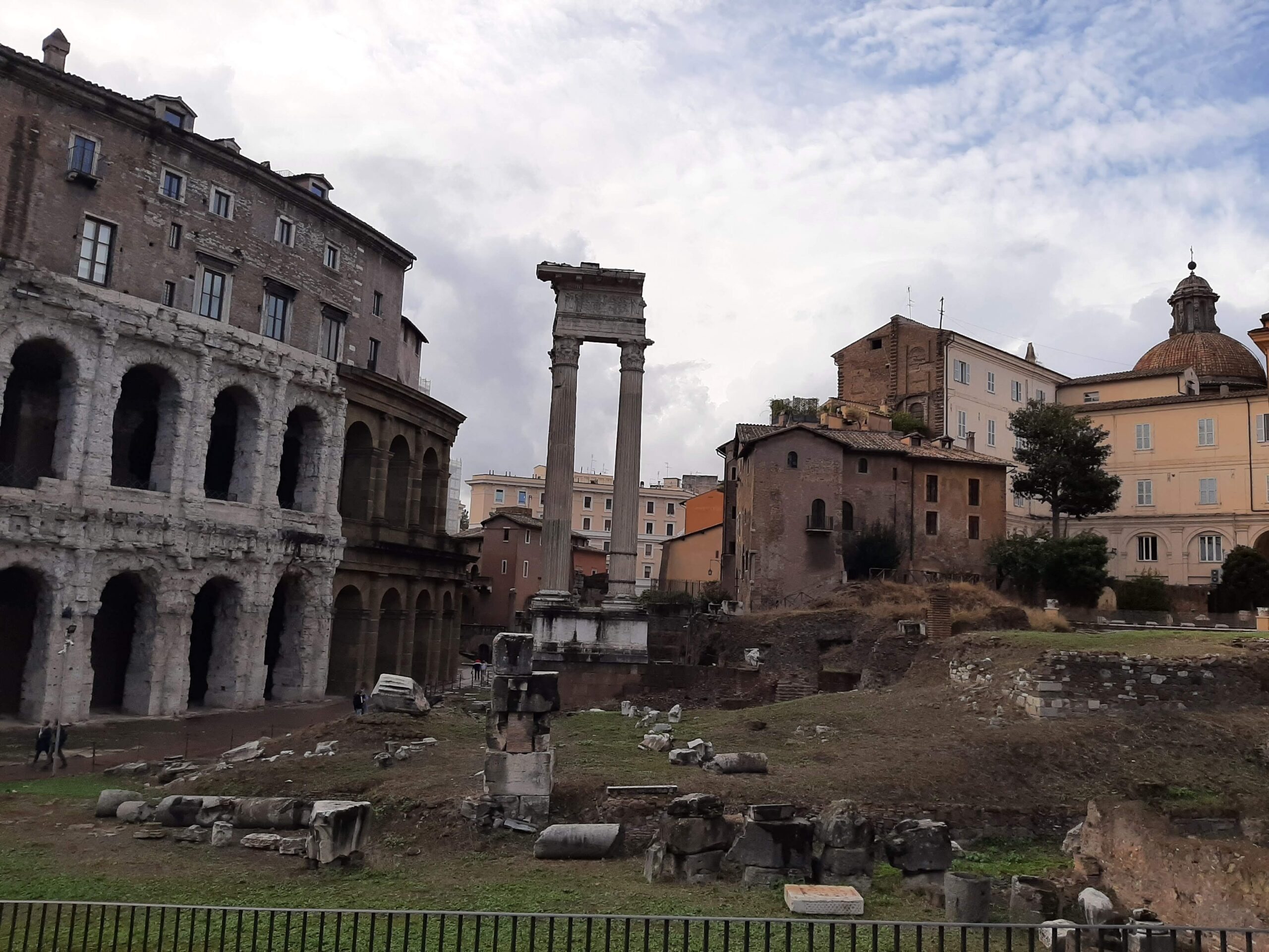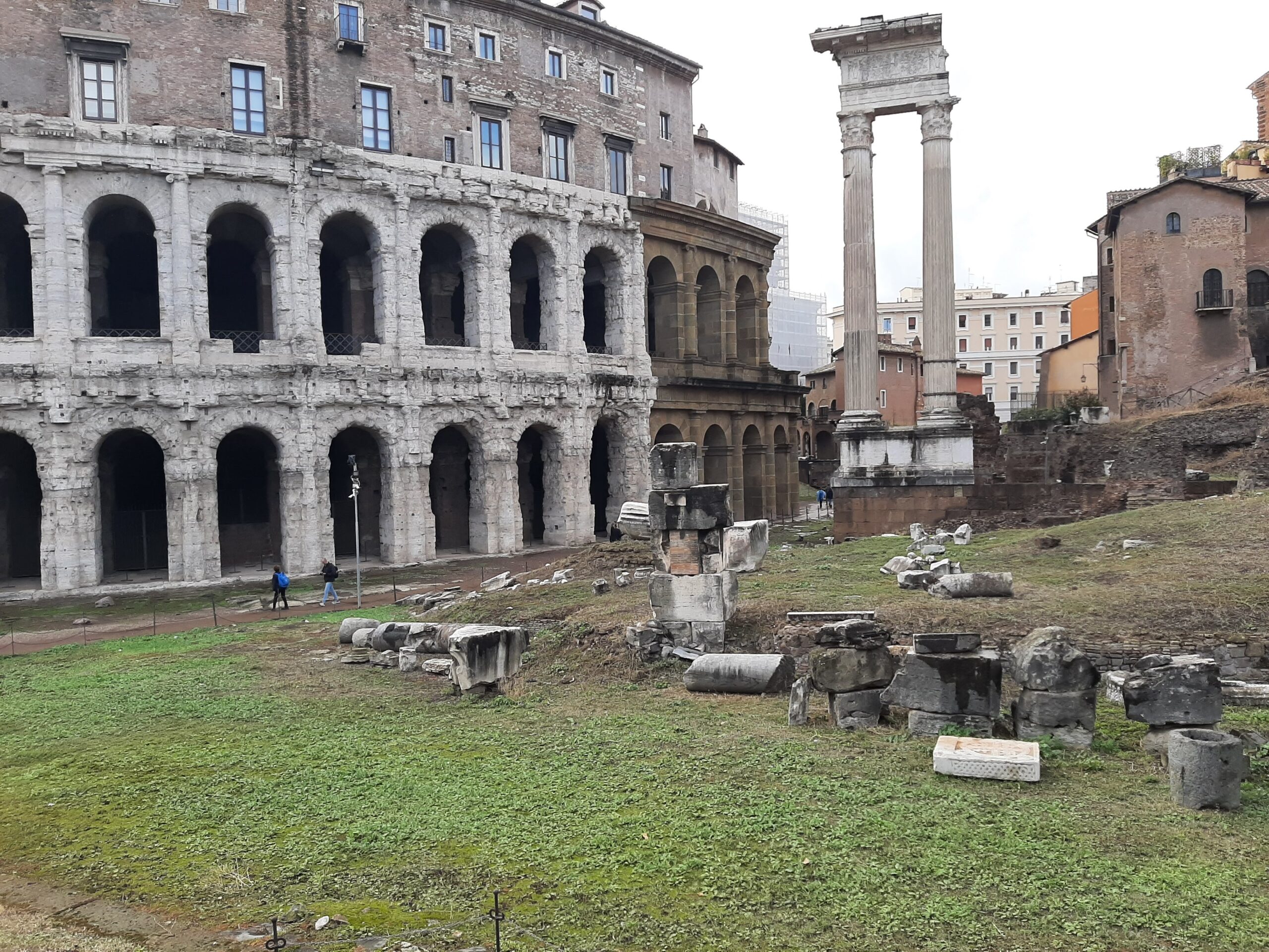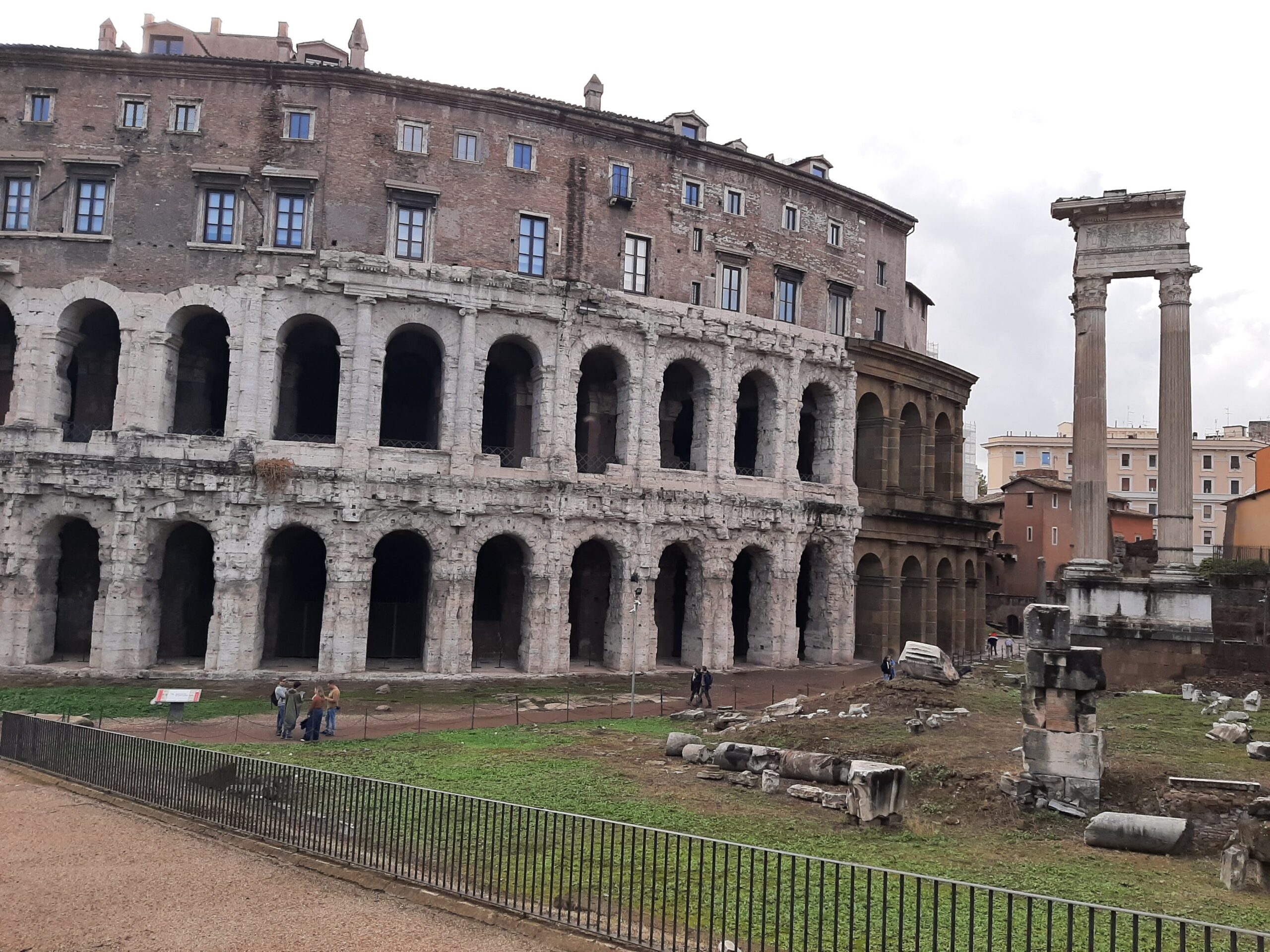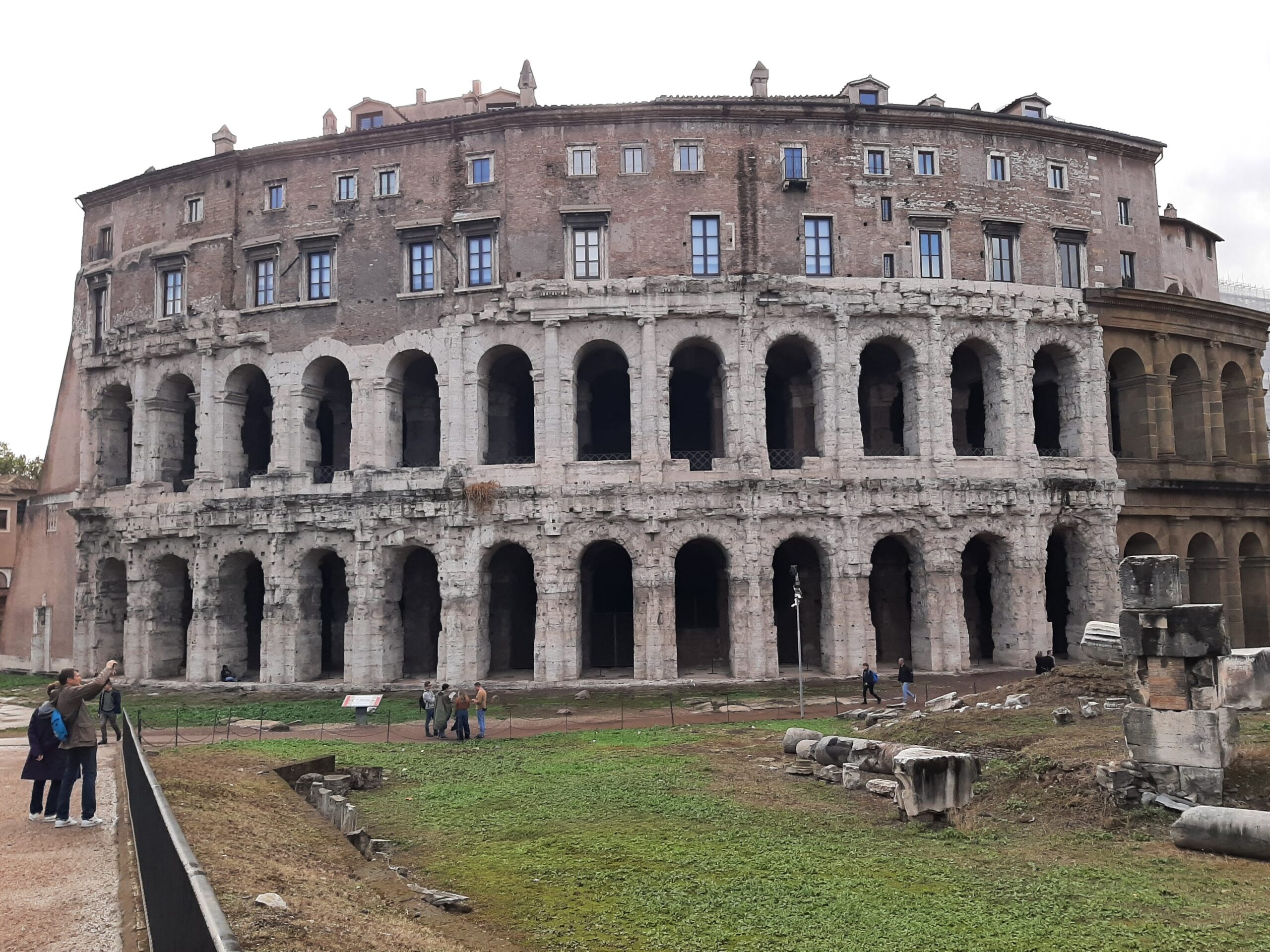 After the hour tour of the Domus, we resumed our journey of more roads to explore, visiting Piazza del Popolo (3 churches and an obelisk), National Museum of Rome and eventually arrived at the Teatro di Marcello. This theatre was commissioned by Julius Caesar, taken over by Augustus and completed around 17 AD. The remains of the theatre were used as a base to add a 16th century building which still stands today. There are two temples adjacent to the theatre, the main one a Temple to Apollo. Once again most of this site was buried by subsequent development and land fill over the centuries, and recently uncovered.