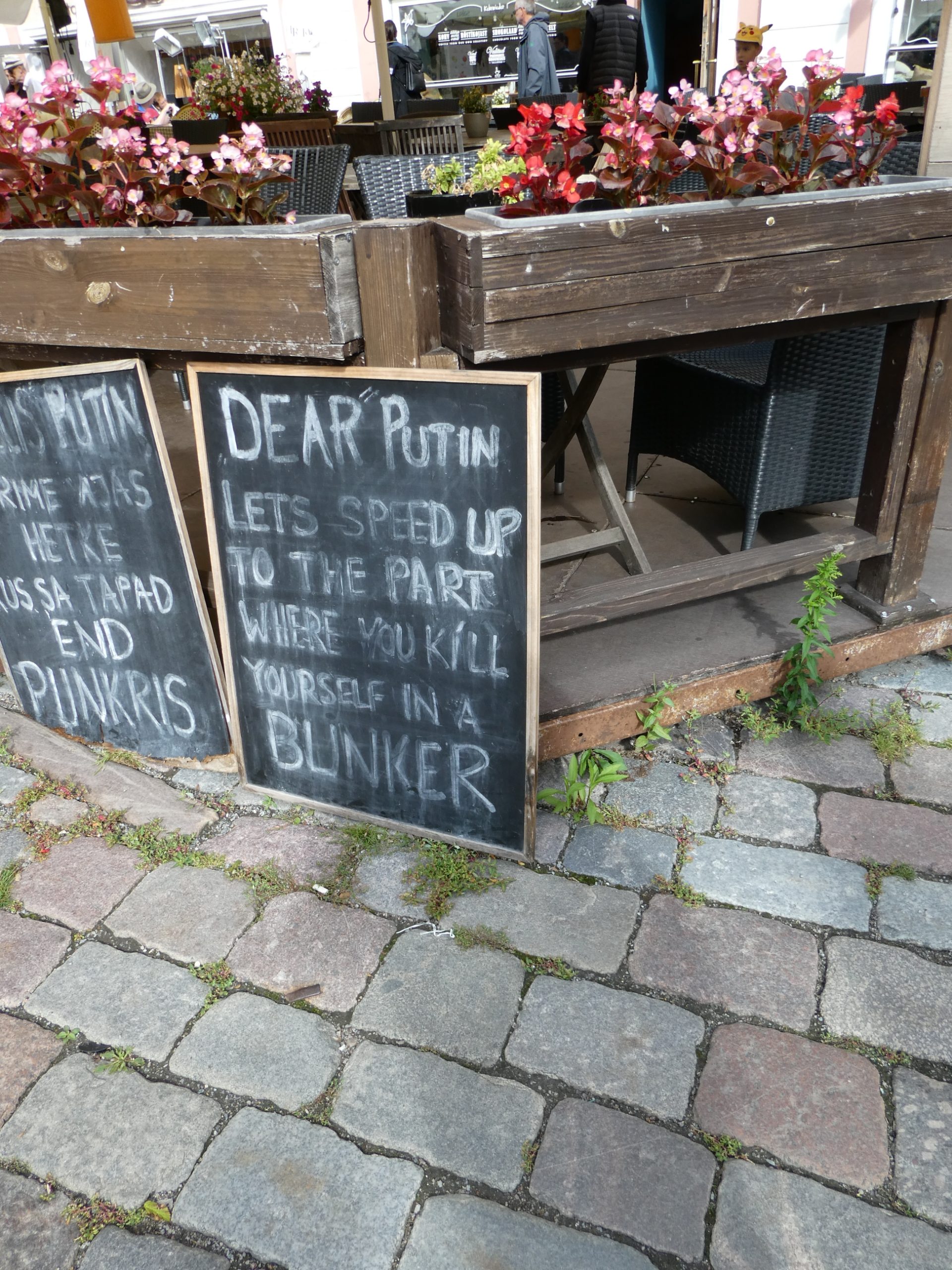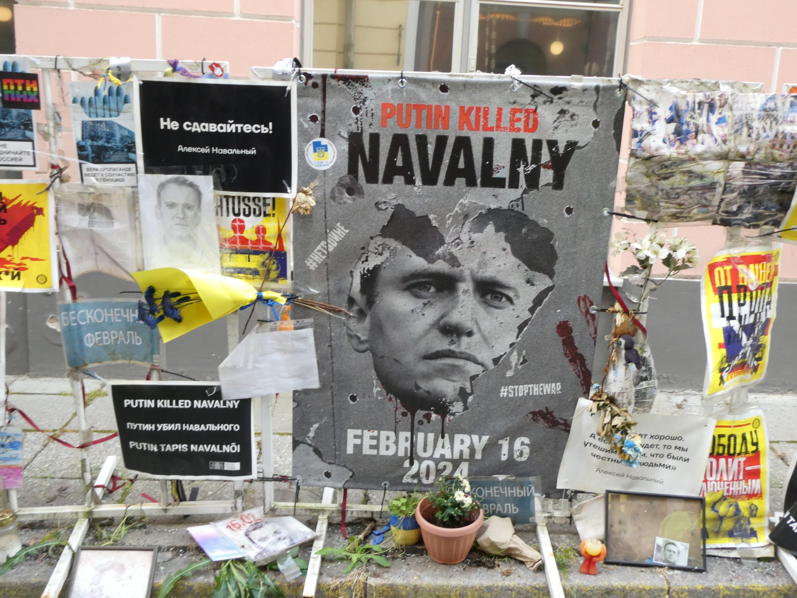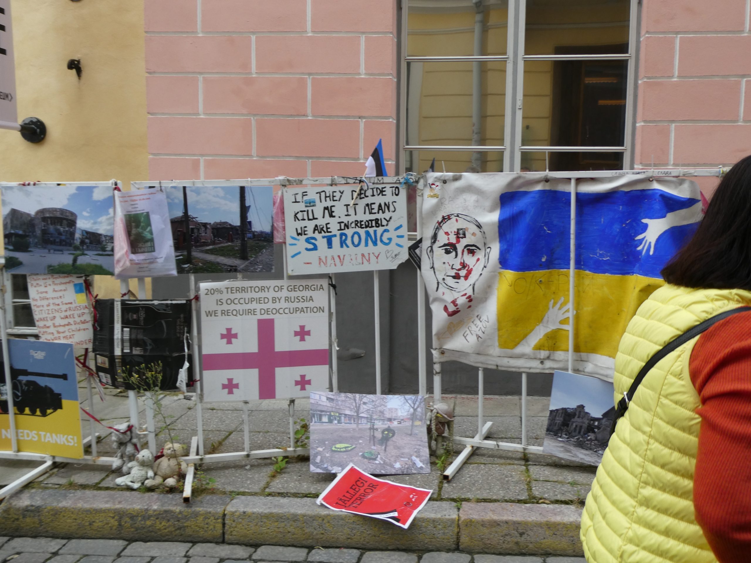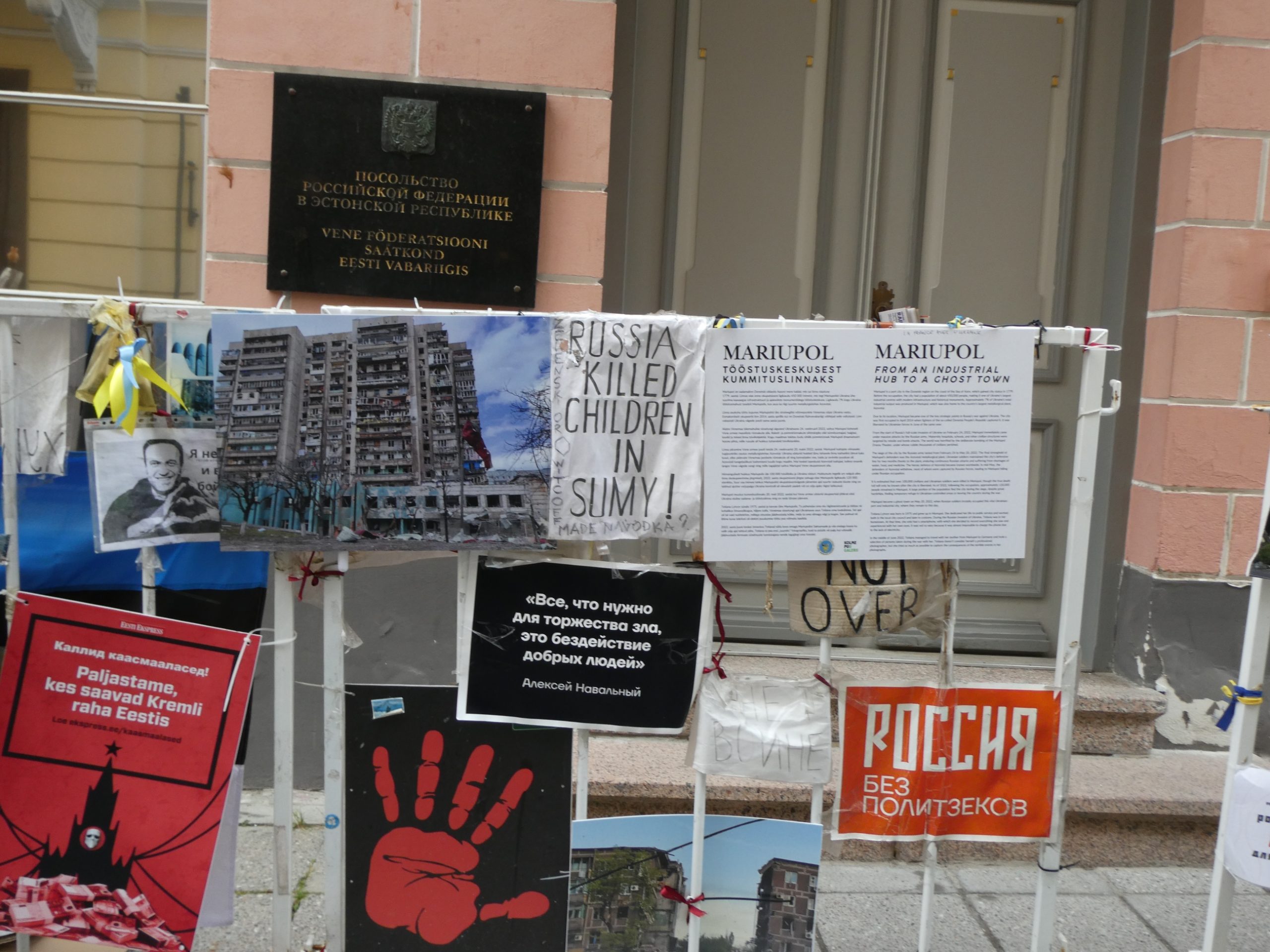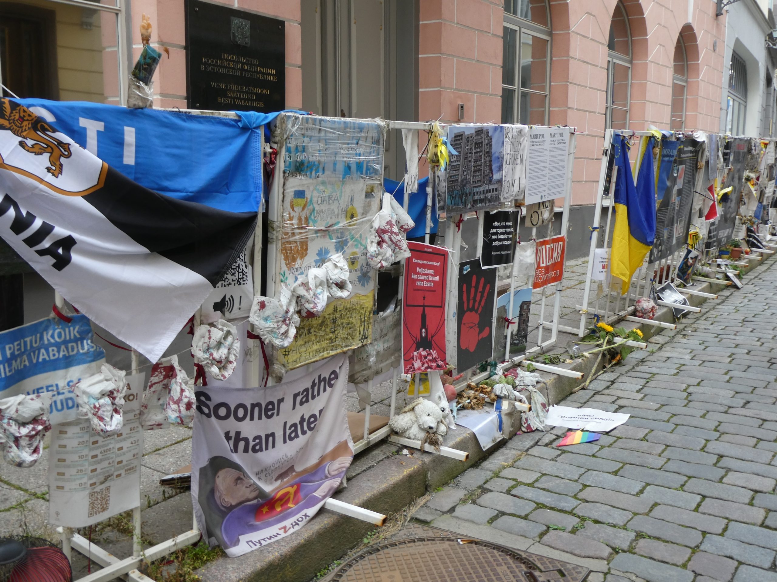 Also, the Russian embassy located in town was subjected to a huge amount of protest material on the footpath outside, with lots of signs calling Putin a war criminal.