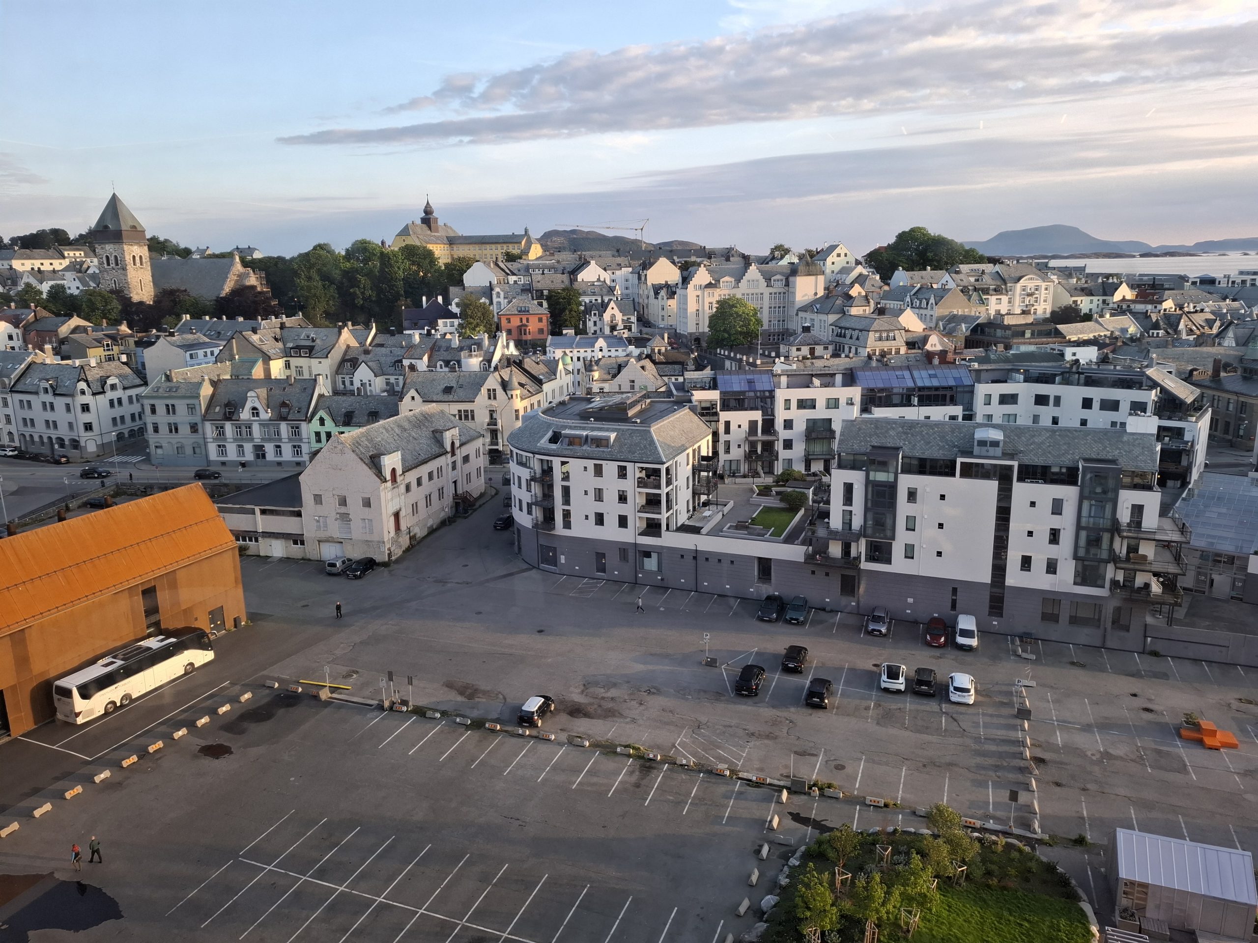 After a practice ride around the nearby carpark we set off on our ride just after 9.00. We cycled approximately 22 km in total, including riding around the island of Hessa, and ascending the Alska mountain which had a lookout over Alesund. At the end of the ride we had short time in the centre of Alesund town before returning the ship in preparation for our second behind the scenes tour. This time it took in the engine room and the captain’s bridge. No photos were allowed again but it was well worth doing and getting an idea of how the ship operates with power and energy and navigation.