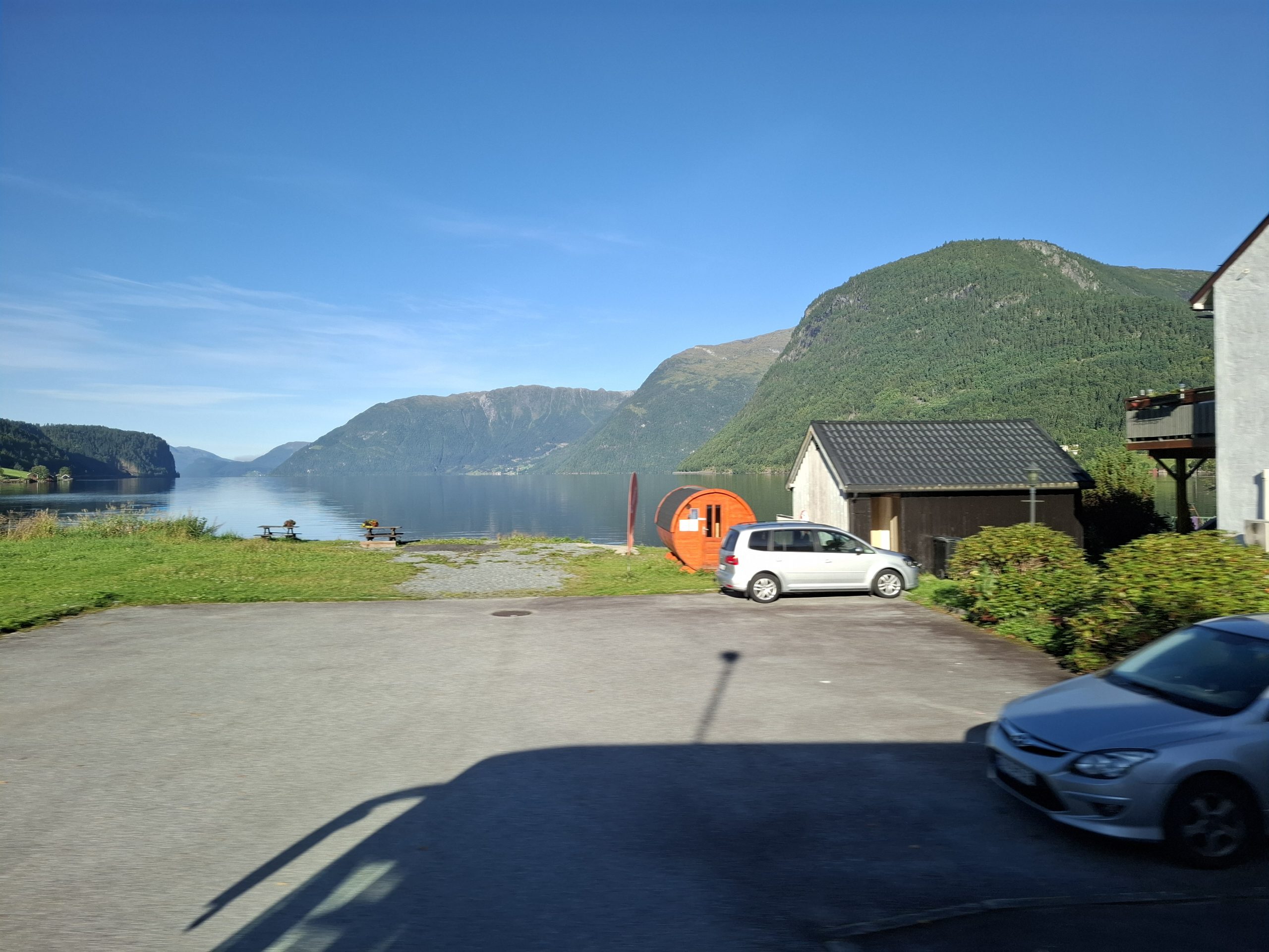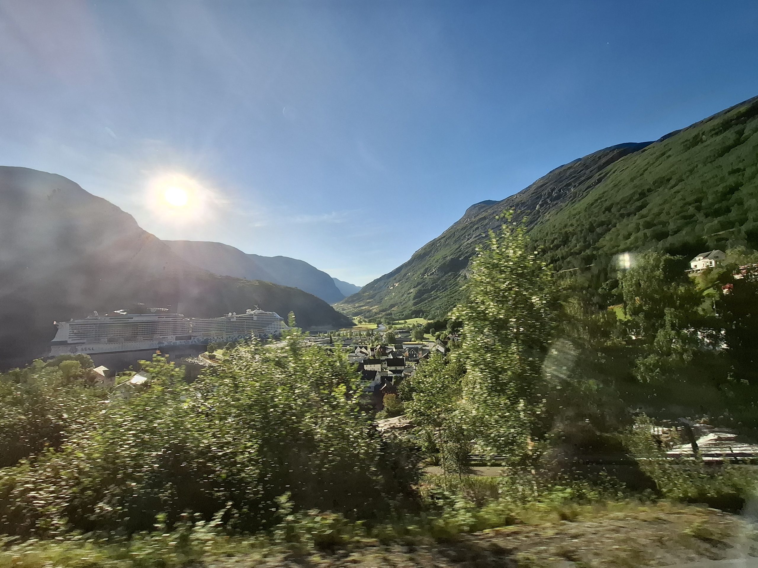 We returned to one of the villages we had passed through for lunch. It was a small village called Stryn and we had a tasty soup, salmon with potato, and lemon cake for lunch. Afterwards we started the drive back to Geiranger with many stops at lookouts and waterfalls, and finally a spectacular lookout over the Geiranger town and fiord where our cruise ship was docked, arriving at around 17:30.