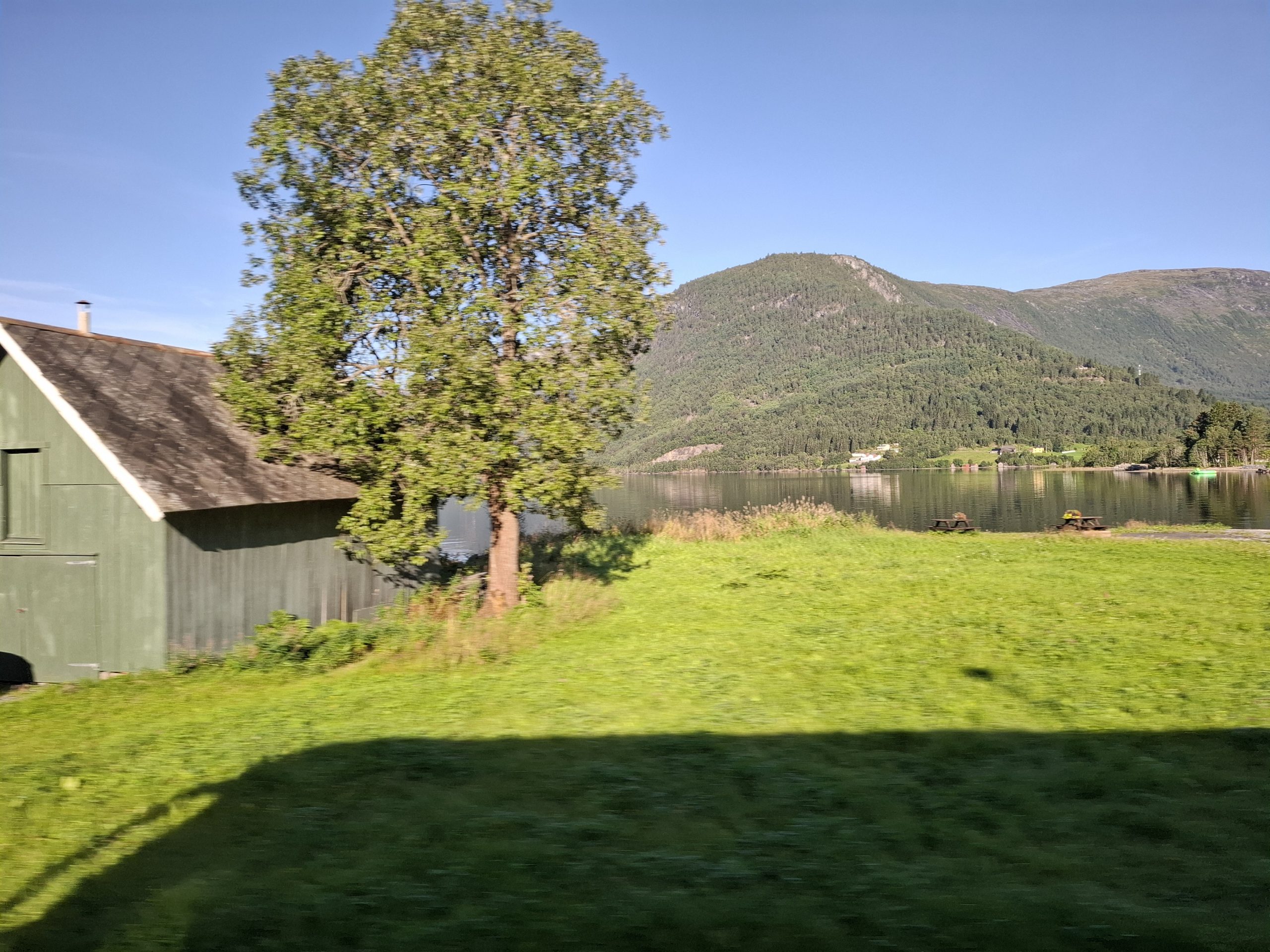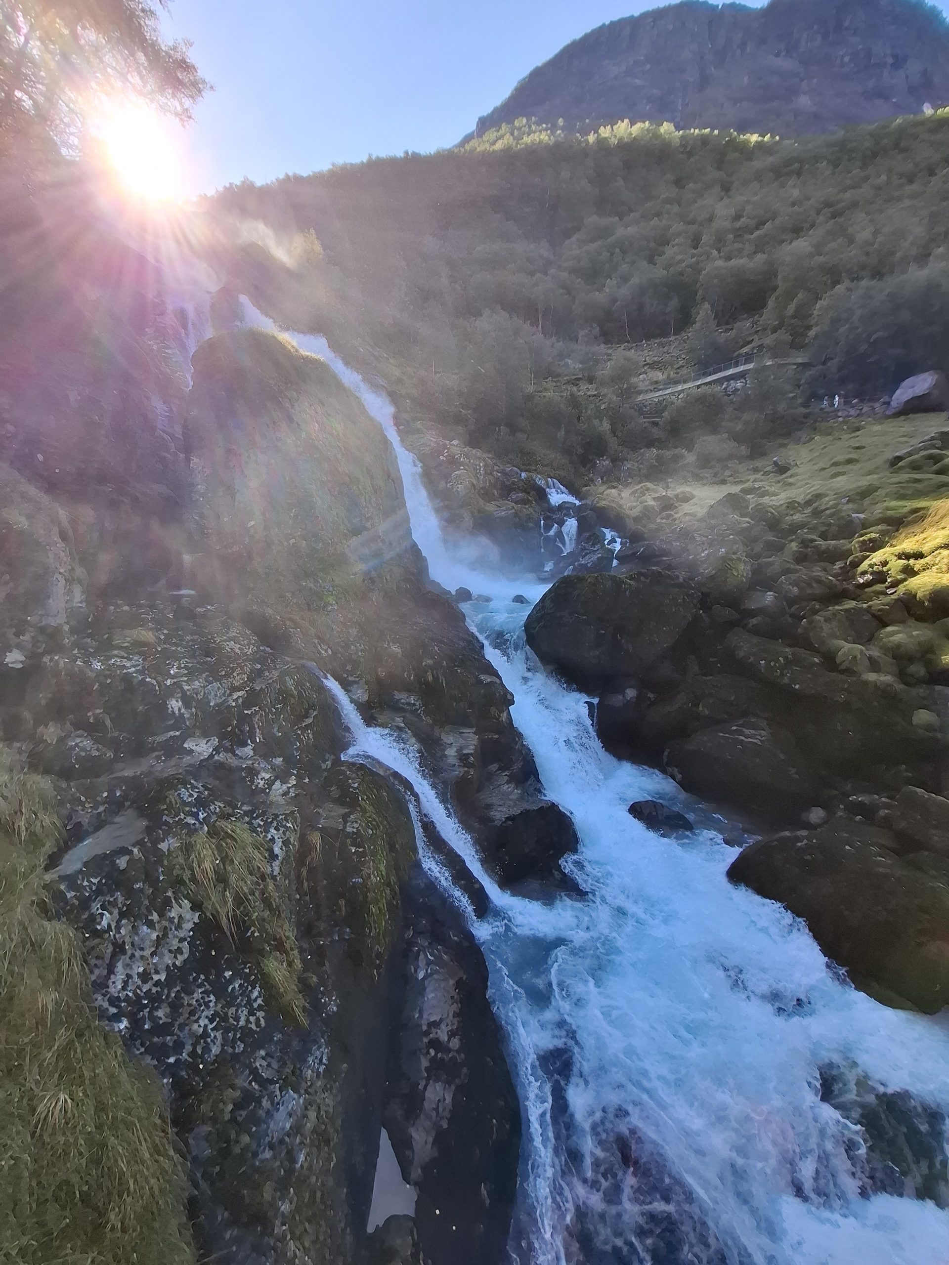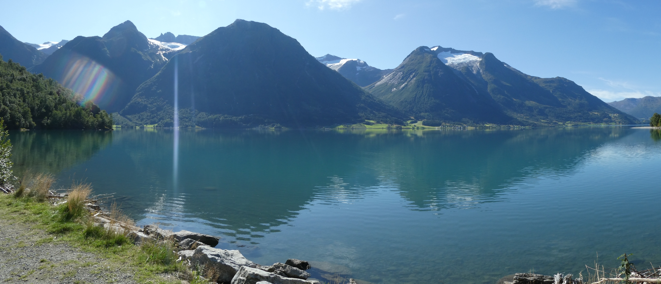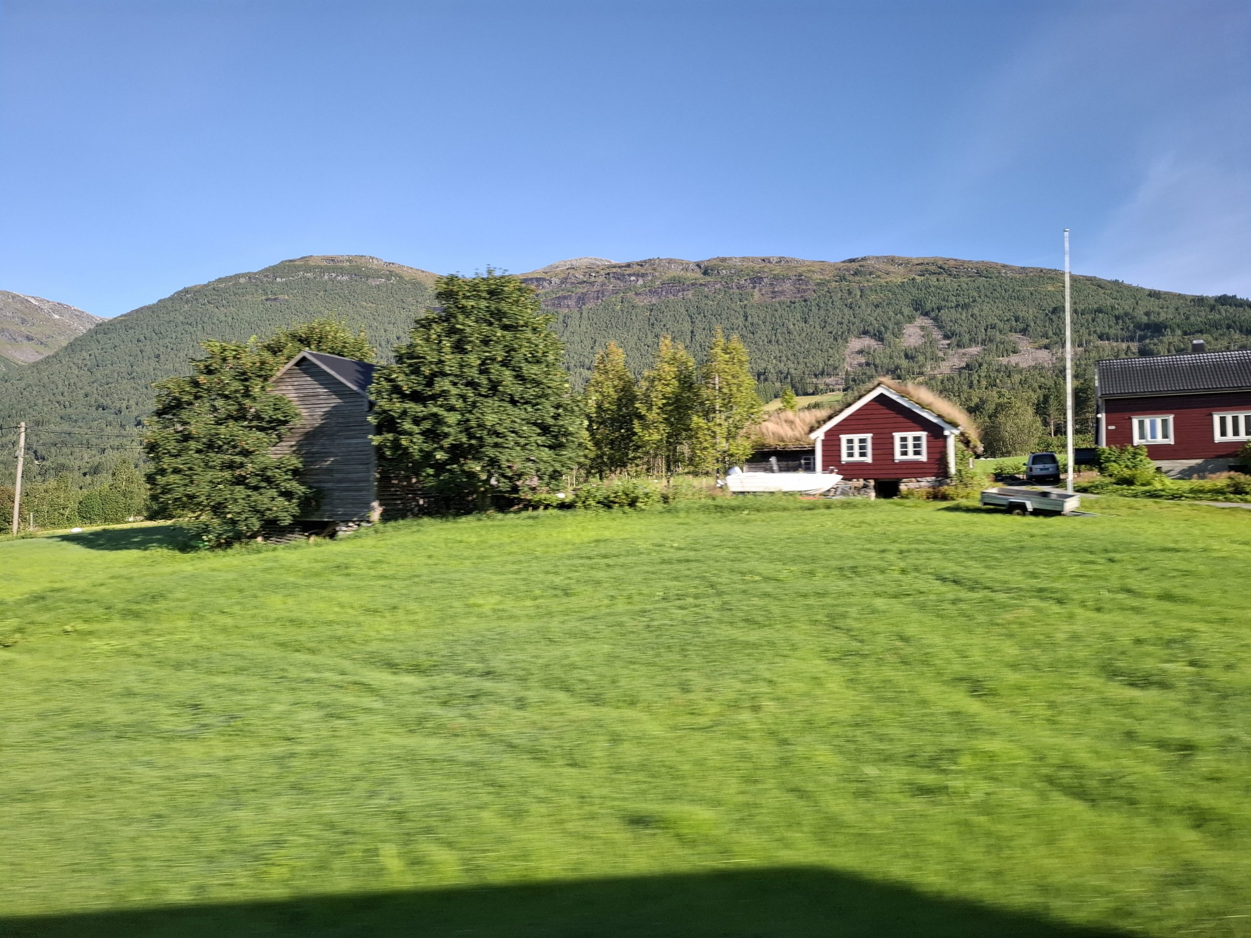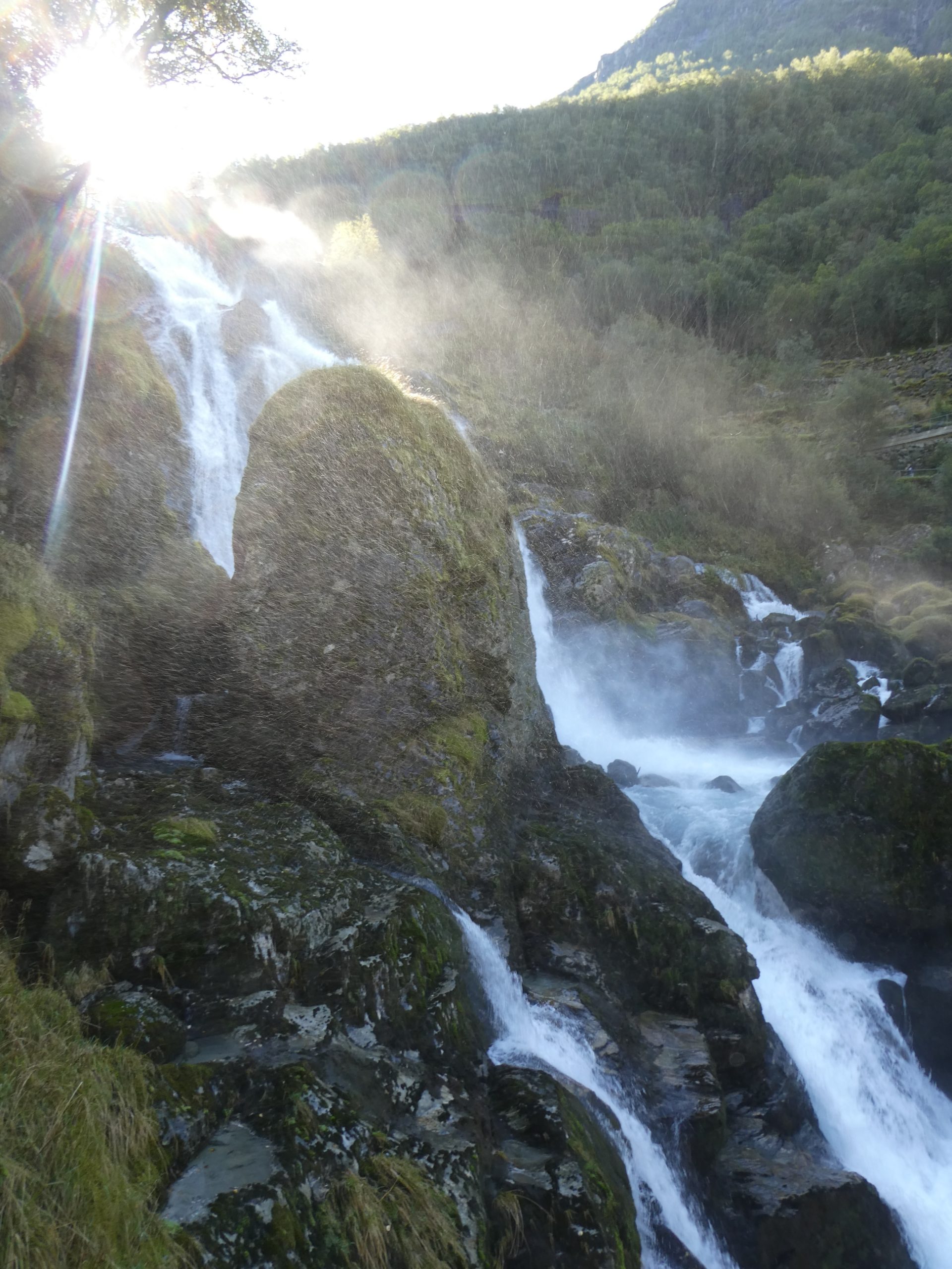 It was a very pleasant drive through the Norwegian countryside through quaint villages and rural farm holdings, as well as river, waterfall and mountain scenery. Early morning there was low cloud hanging over the fiord and visibility was limited for a while but we were told today the weather was going to be great. It did clear up later in the morning and was clear by the time we arrived at Briksdal. There were glaciers on the plateaus and forests as well along the way.
