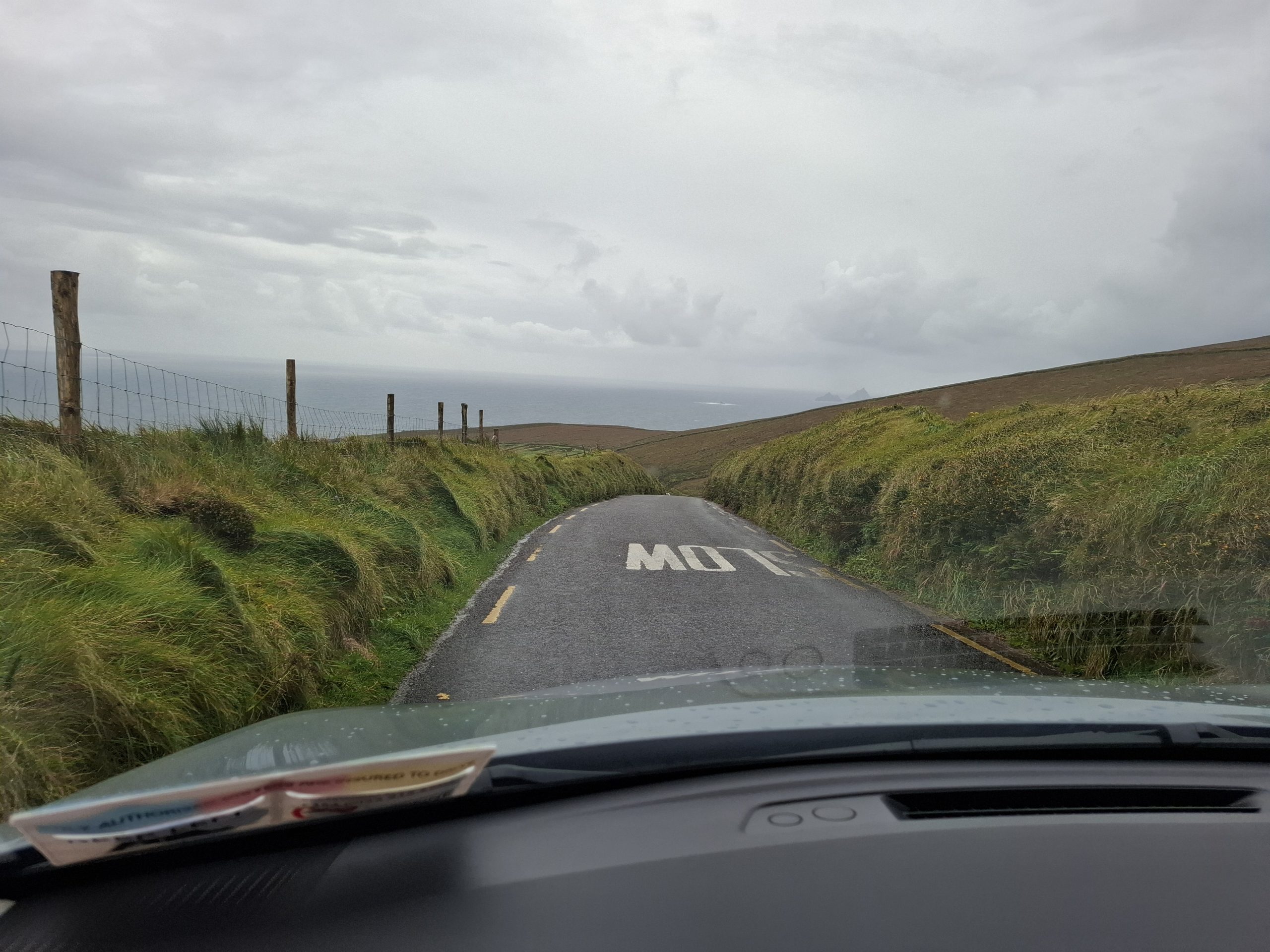 We drove to Castlemaine, the closest village to our next 2 night's stay, but nothing to see here, so we drove onto Tralee! Here we made a note never to trust Google maps again to set the route for us as this trip turned out to be along the narrowest, windy, hilliest road in County Kerry. It took us 25 mins of roller coaster driving with, thankfully, only 5 oncoming cars to pass us, plus one man and his dog. It was exhilarating ! Another mental note, try and avoid driving on a 'L' road if possible.