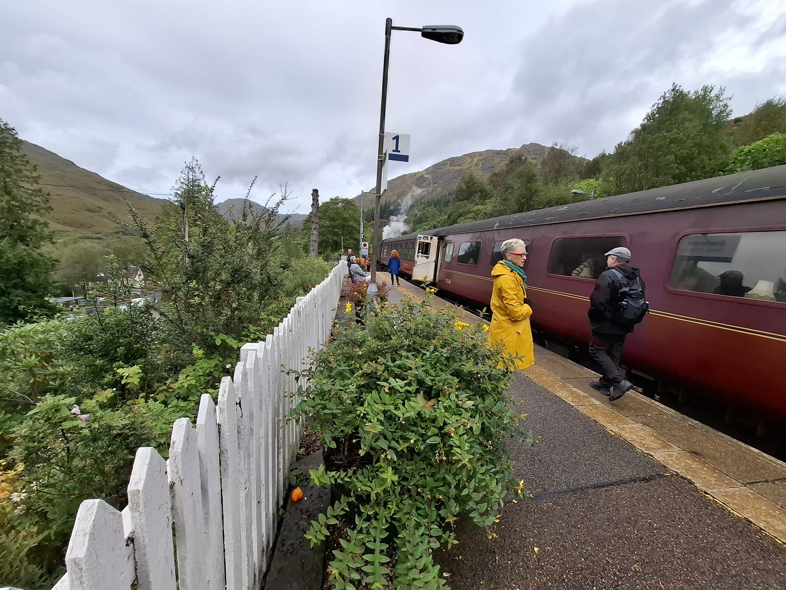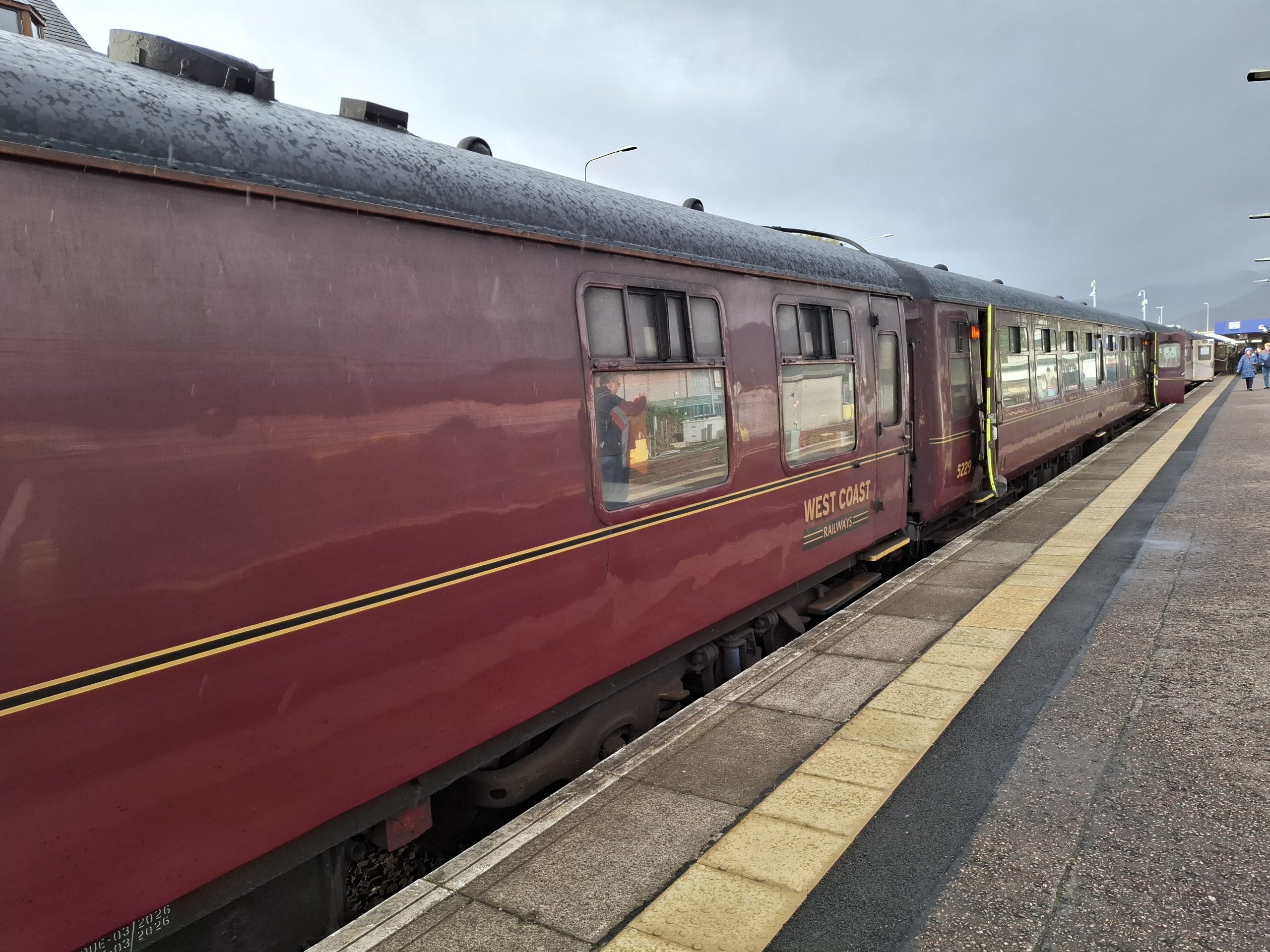 We arrived at 9:30, found a close car park, had a toilet stop and was boarding the train at 9:55. The Jacobite Express is promoted as being the greatest railway journey in the world! The round trip to Mallaig and back, passes a list of impressive extremes.