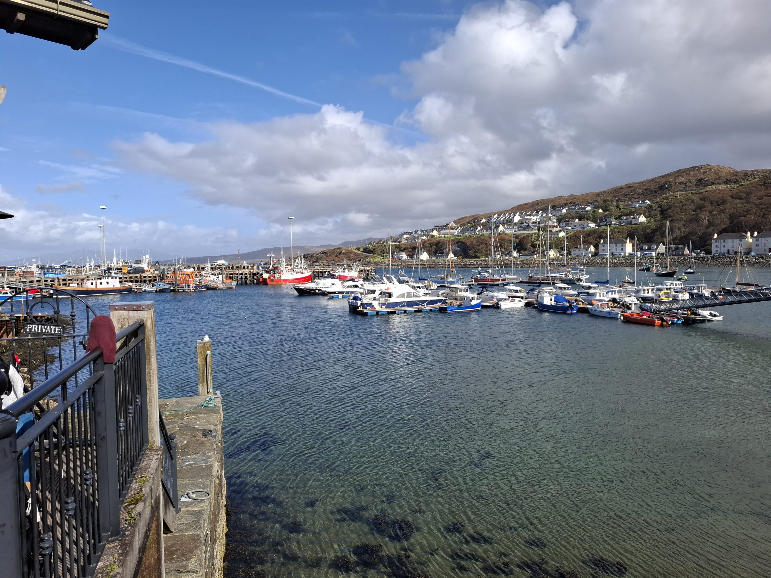 The train passes over the 21 arch Glenfinnan viaduct, made famous in the Harry Potter movies. As we passed, there were hundreds of people lining the adjacent hillsides and roads to capture a picture of the train as it goes over the viaduct. The engine driver let off a series of steam bursts to give the onlookers a good photo op as we passed. One way is just under 2 hours and on arrival in Mallaig, we sought a restaurant to try the local Cullen Skink soup - a fish chowder with potatoes and spring onions - delicious.