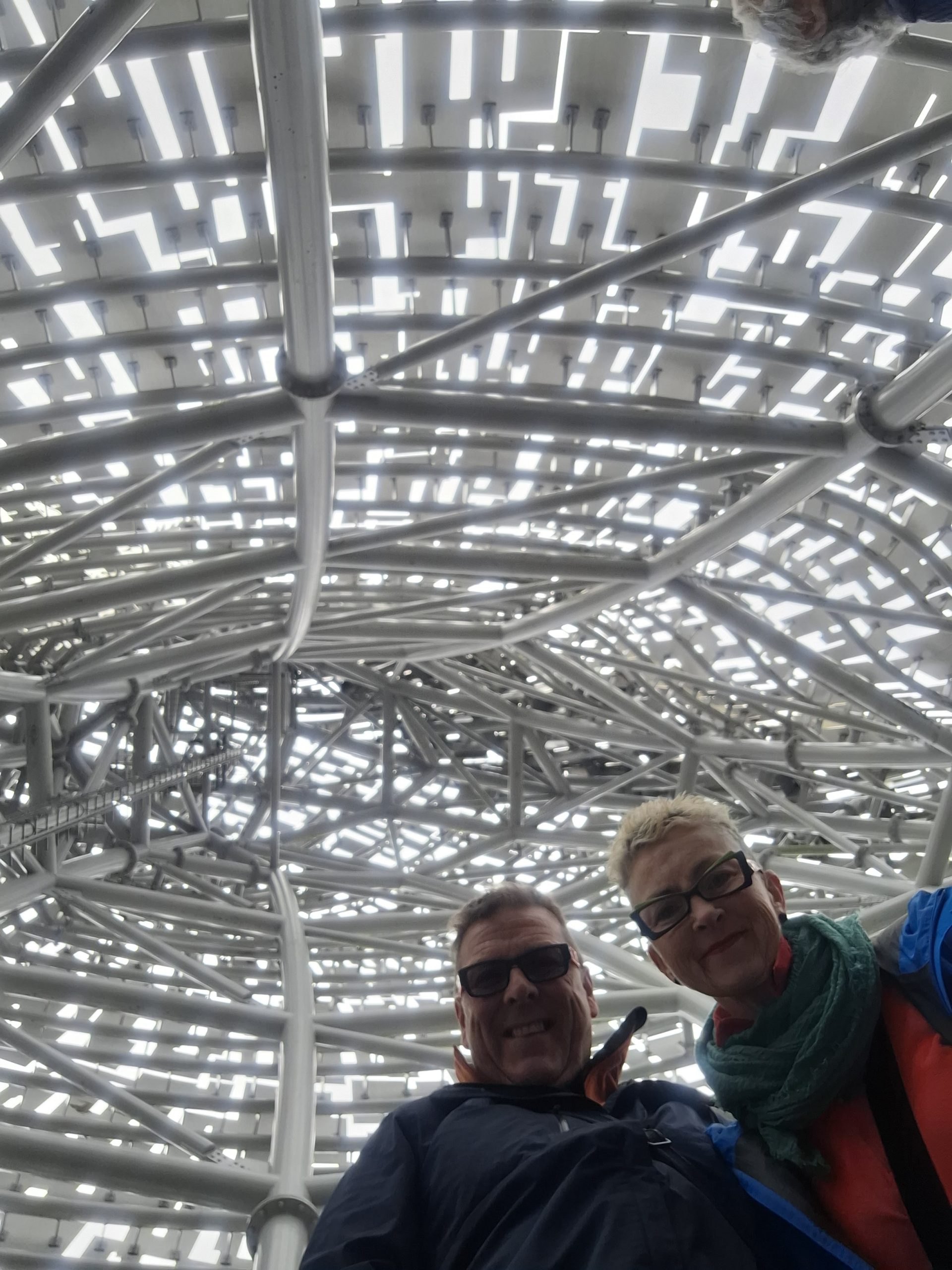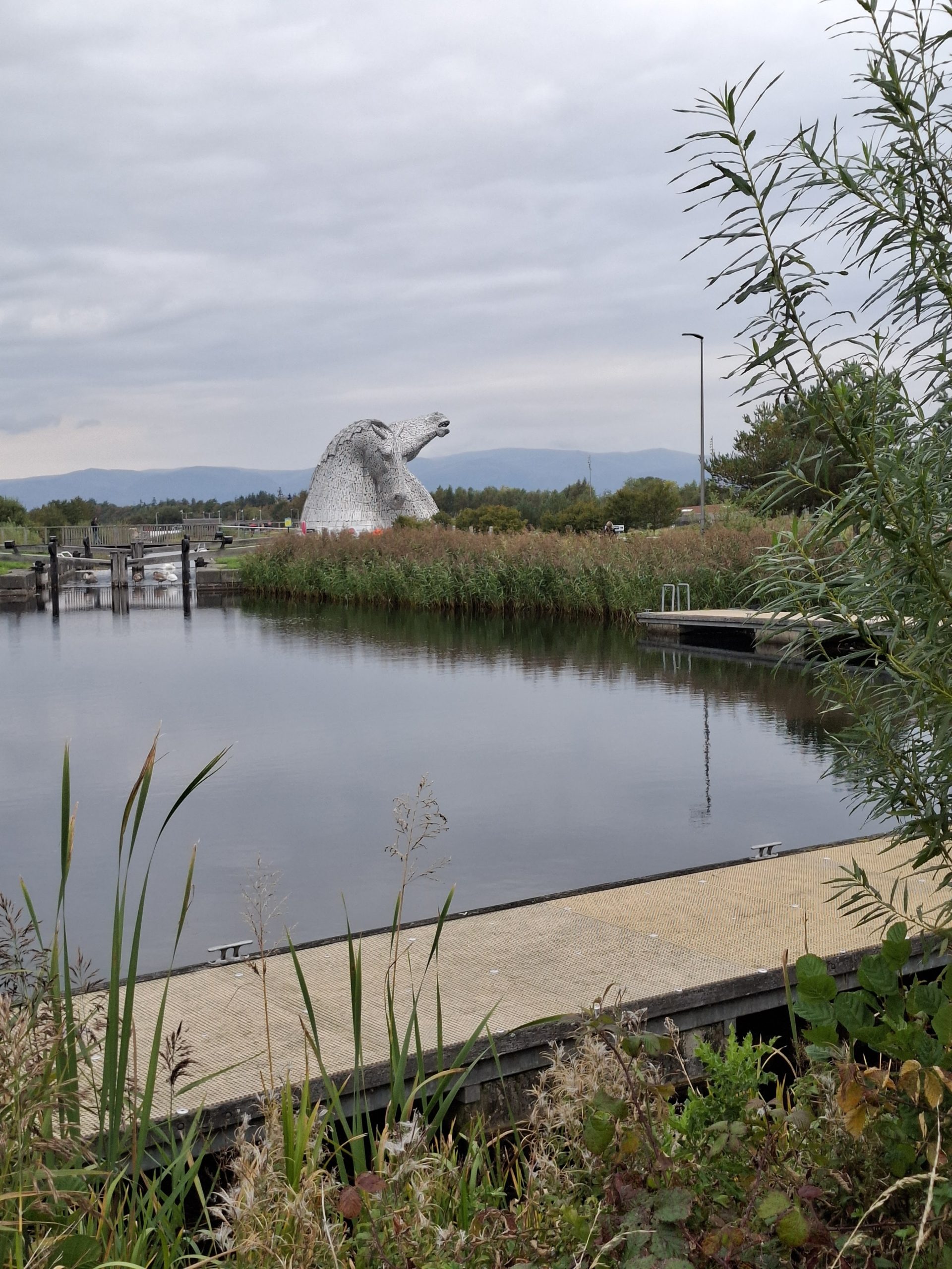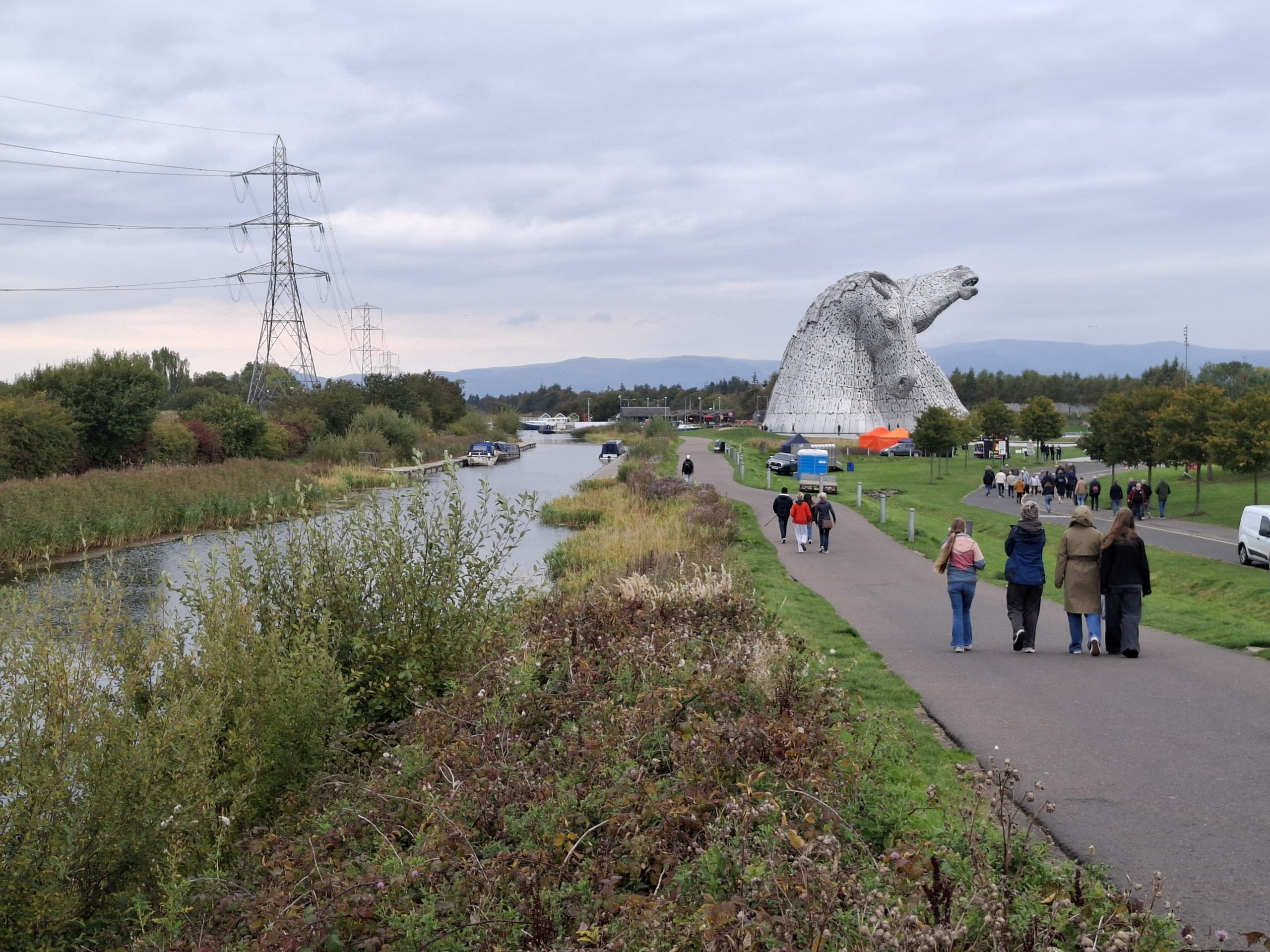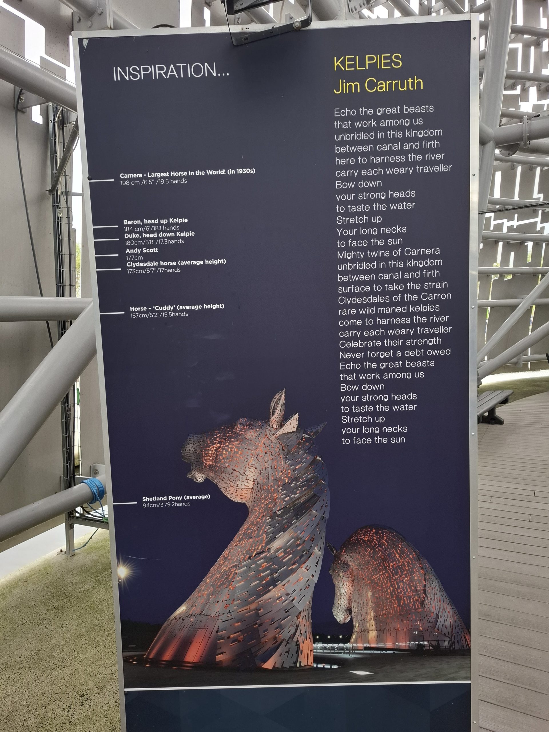 We arrived at The Kelpies in plenty of time, the carpark was free for those who arrived prior to 10:00 and the walk from the car park through wetlands and canal area was very pleasant. Time for a coffee stop and onto the tour which took us inside the massive sculpture of the horse named Baron, the one with its head turned up.